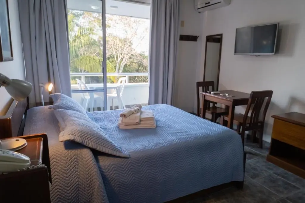 Apart Hotel Aguasol in Salto, Uruguay, offers comfort and style with fully equipped apartments, ideal for tourists. Enjoy an outdoor pool, gardens, and recreational areas. Perfect for a relaxing vacation in a cozy setting.