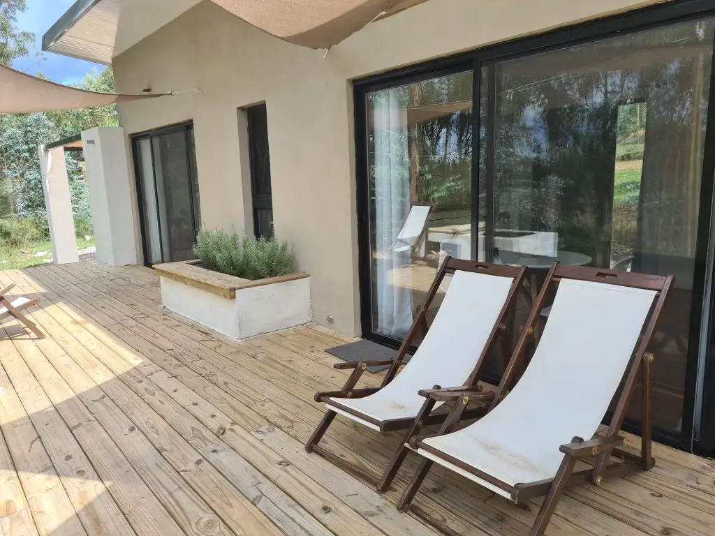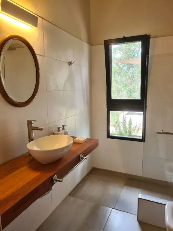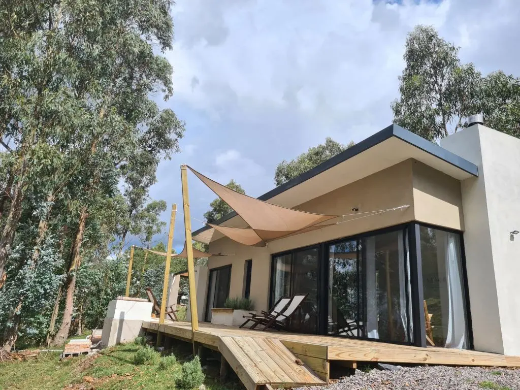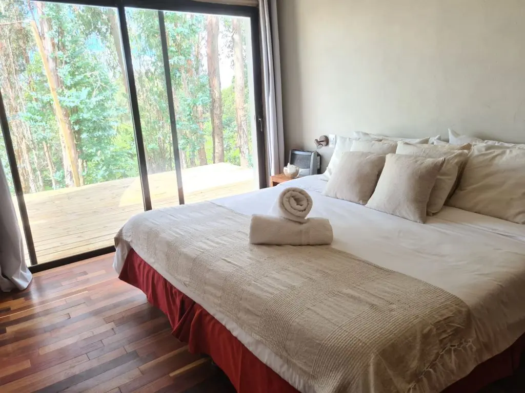 Cuenta con 1 dormitorio para 2 personas, con baño en suite, calefacción en invierno y aire acondicionado en verano, vista panorámica, deck exterior y vista directa a la salida del sol y la luna sobre las sierras.