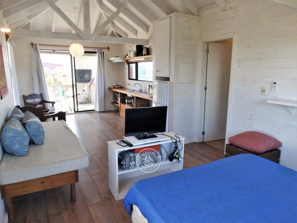 Cabaña de madera para 2 personas con excelente vista. A 400 mts de la Playa de La Viuda. Amplio jardín. La cabaña cuenta con coicna con equipamineto completo, baño privado, deck con parrillero, wifi, aire acondicionado, smart TV