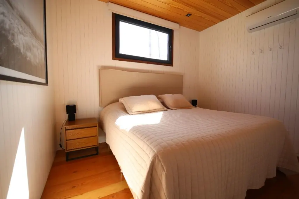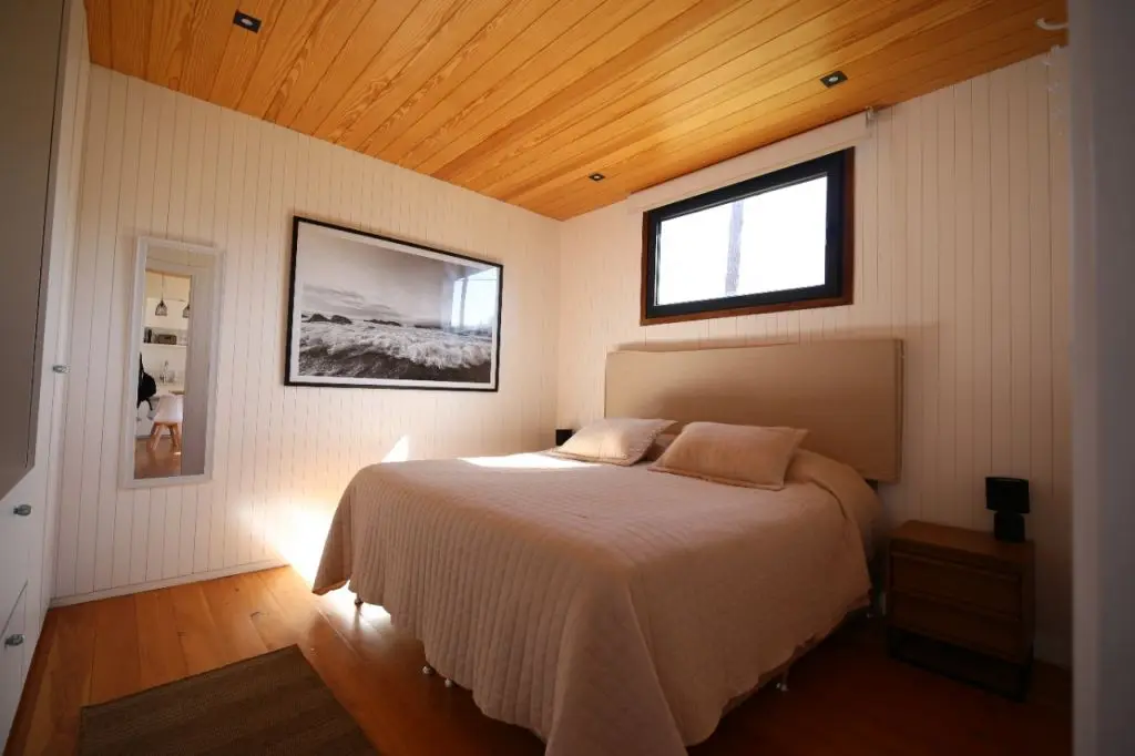 Tiene un dormitorio con cama matrimonial y una cama marinera en el living para 2 personas.