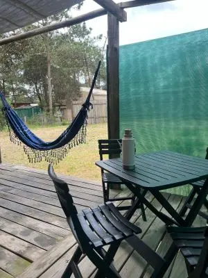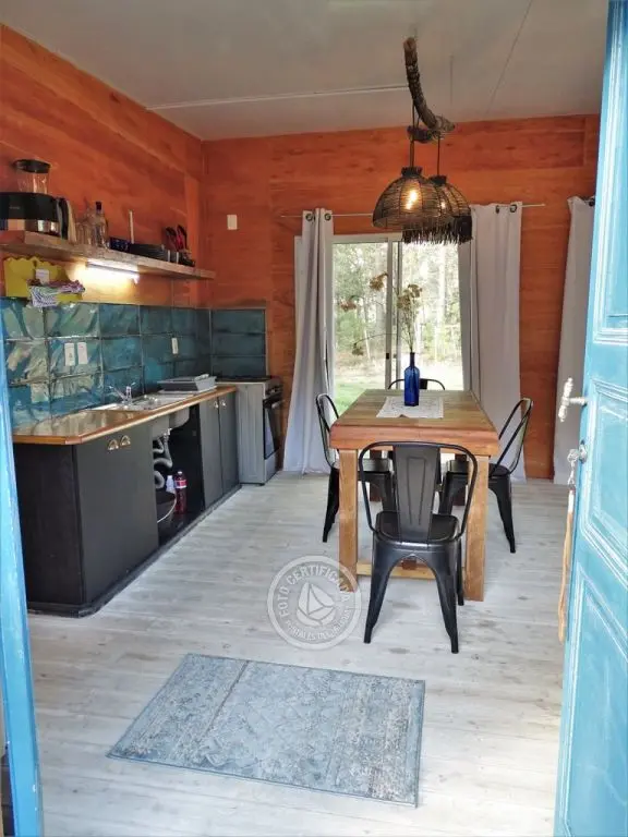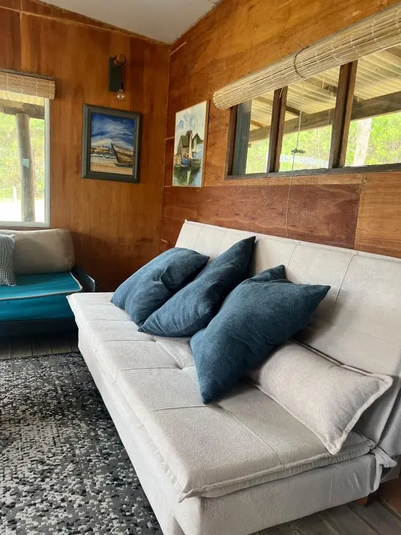 Cabaña de madera ubicada en un entorno amigable y natural, en la tranquilidad del bosque a pocas cuadras de playa grande y del centro.