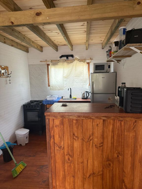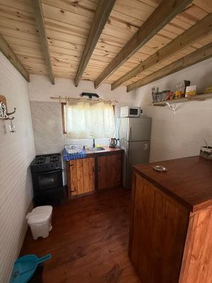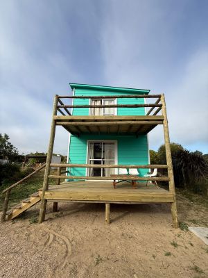 Cabaña de madera de dos pisos y dos dormitorios con capacidad hasta 6 personas,