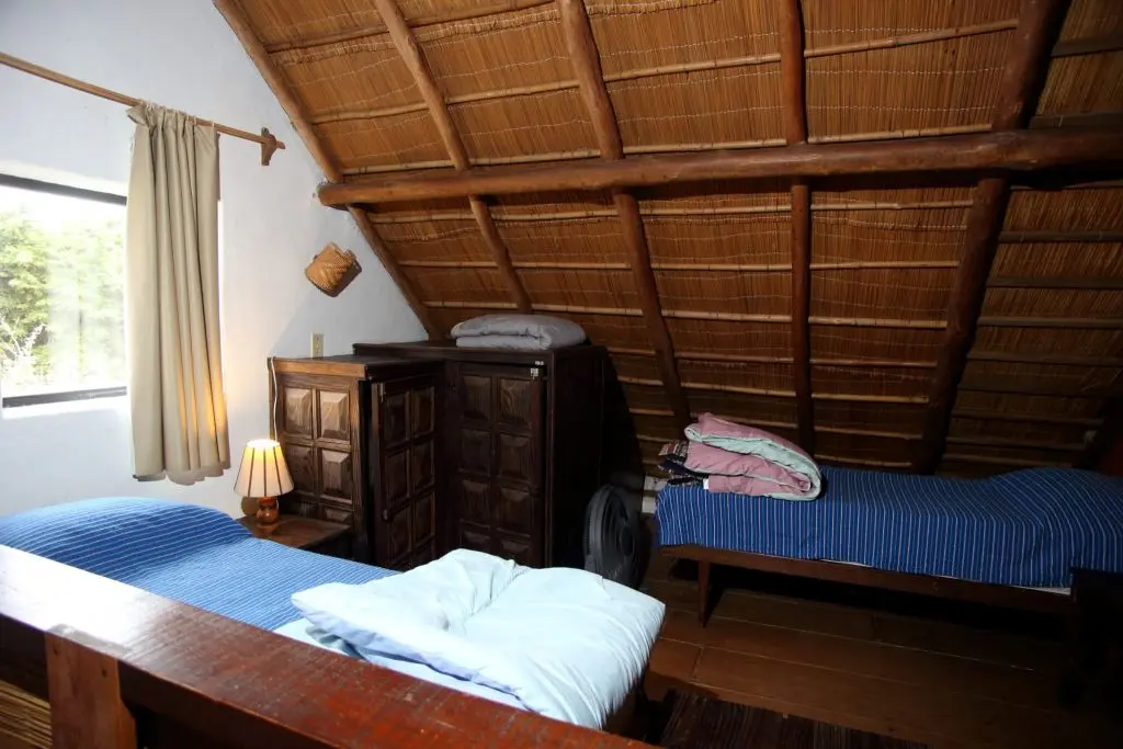 Cabaña de quincha a 1 y1/2 cuadra del mar. Parrillero techado con horno de pan, agua y luz. Heladera con freezer, wi-fi, Directv, aire acondicionado en dormitorio principal