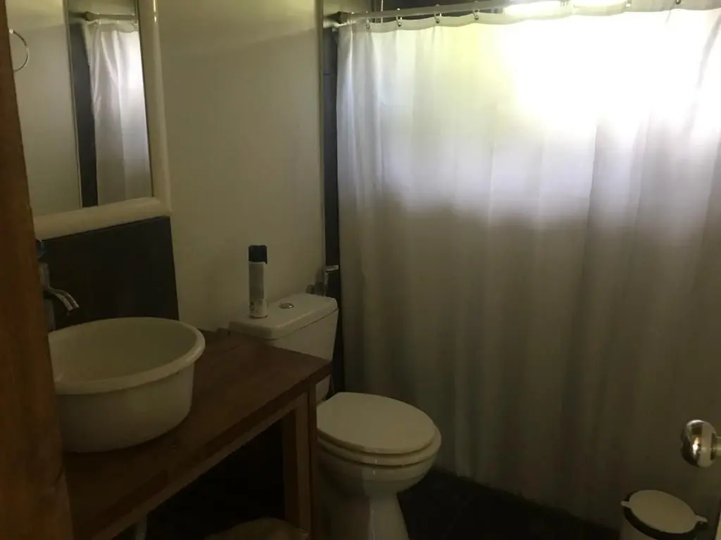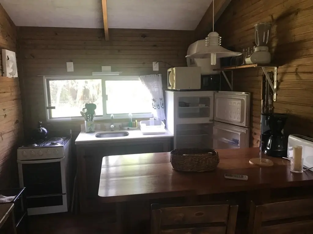 Cabaña en entorno verde y tranquilo a 3 cuadras de la playa y del puente colgante