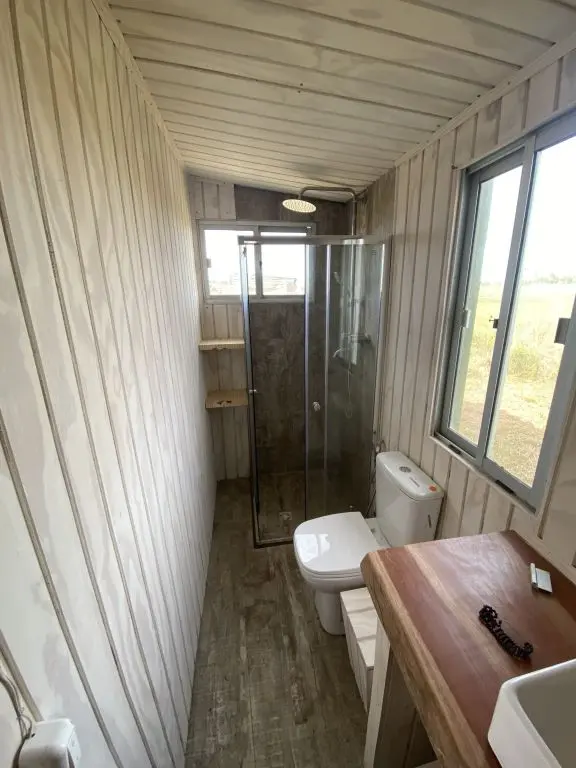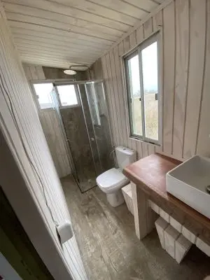 La instalación eléctrica es solar, con paneles, batería y regulador que nos provee de corriente 220v, por lo que cargar tus celulares o notebook no será ningún problema.