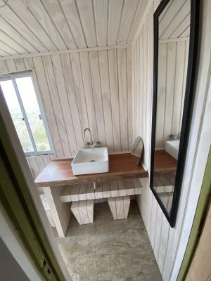 Contamos con un tanque de 350 litros que llenamos con bomba desde la cachimba, y bomba presurizadora que mejora la presión del agua.