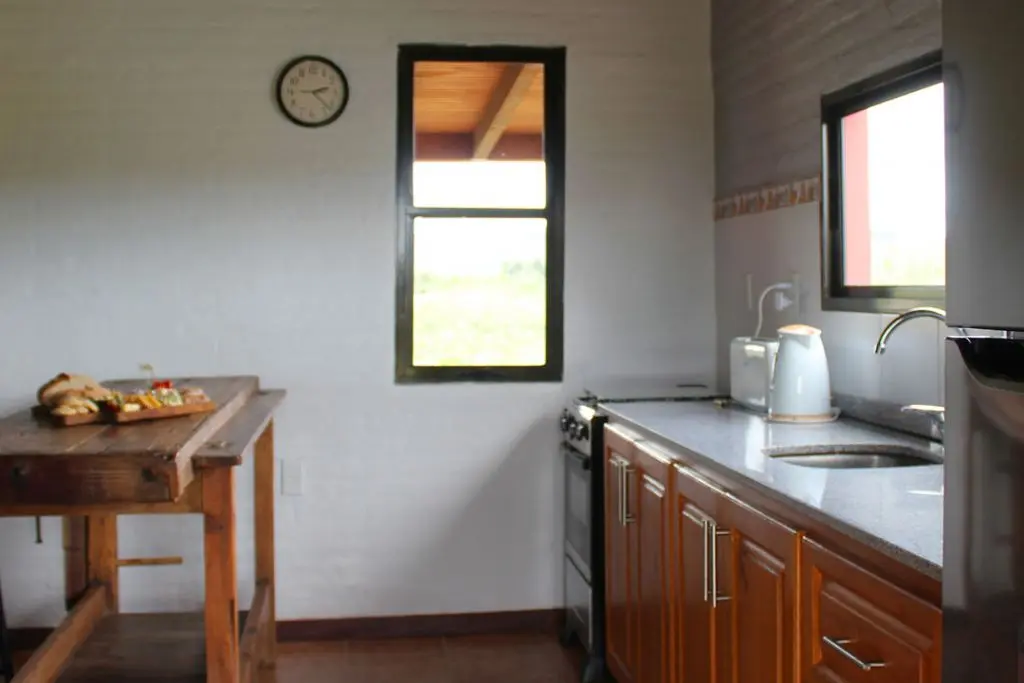 La cocina con horno eléctrico y hornallas a gas permite disfrutar de un ambiente ideal para realizar comidas típicas de la zona.