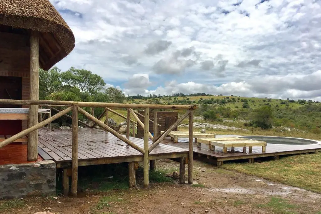 Posee parrillero exterior junto a amplia galería techada con mesa para ocho personas. Deck de madera-solarium y piscina (NO climatizada). Todo de uso exclusivo y con vista a las sierras.
