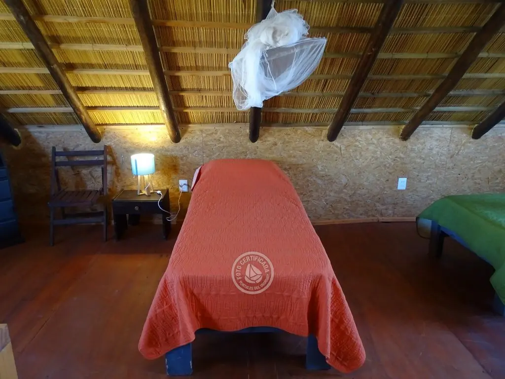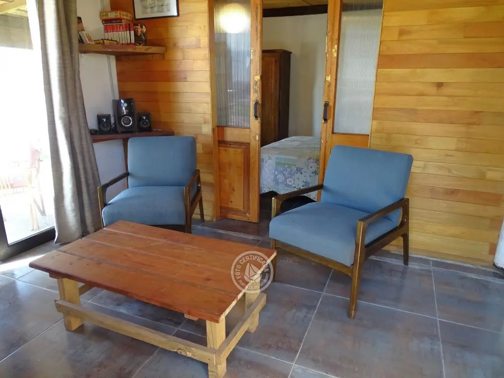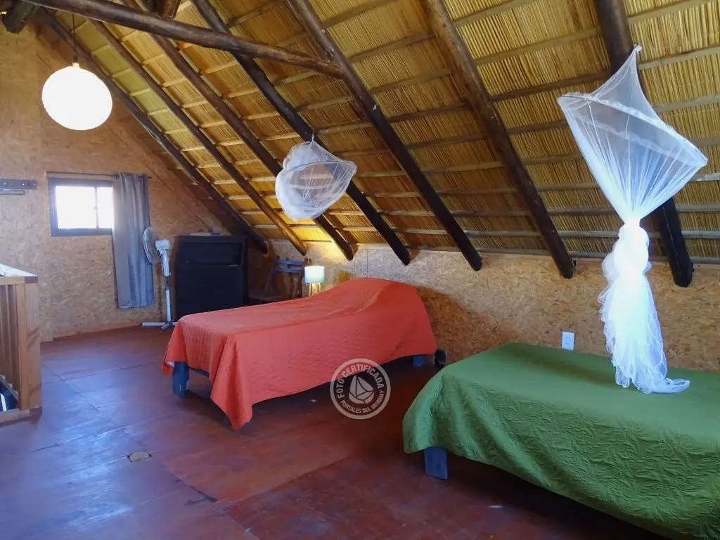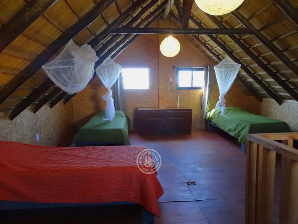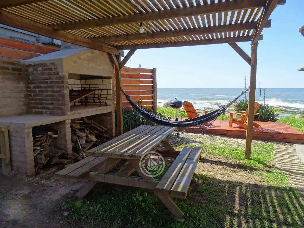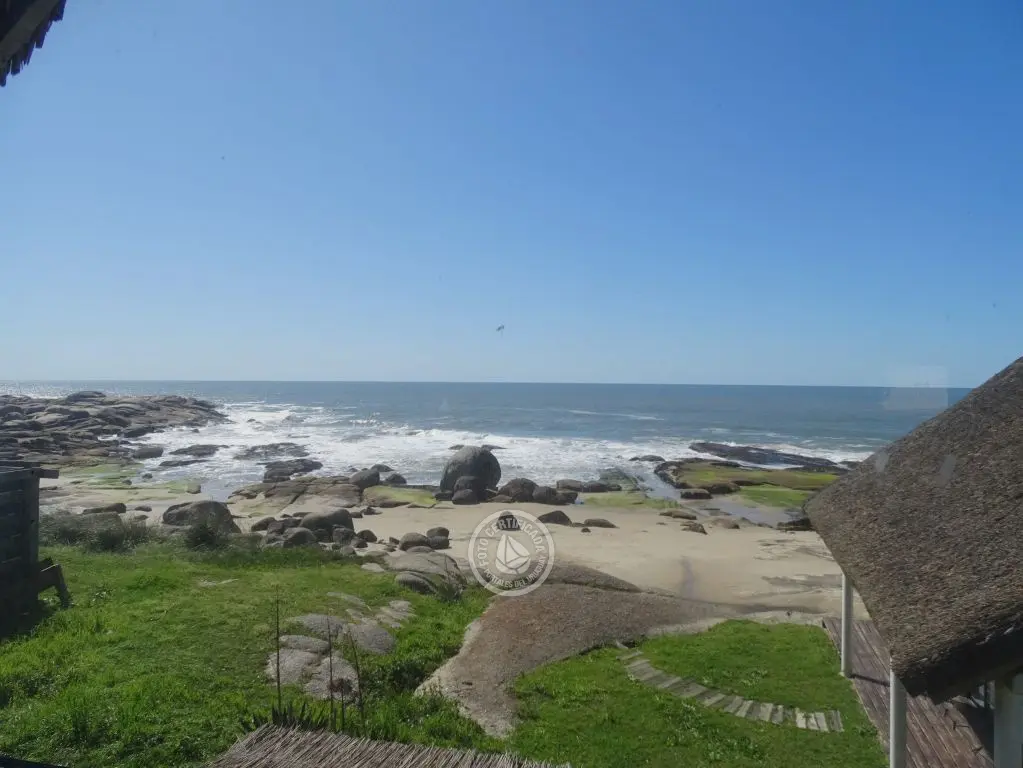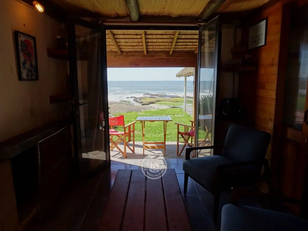 Cabaña frente al mar con hermosa vista hacia las rocas. Para 5 personas en el centro de Punta del Diablo a metros de Playa de los Pescadores y Playa de la Viuda.