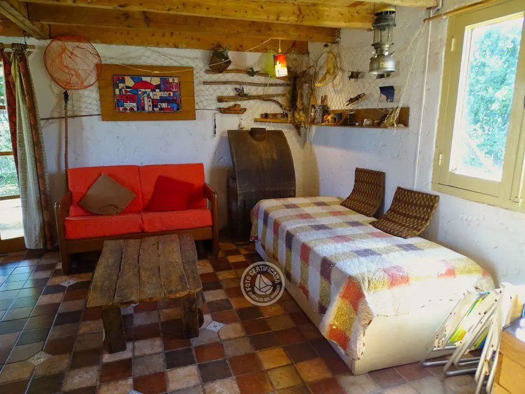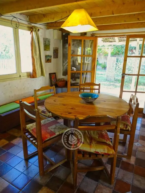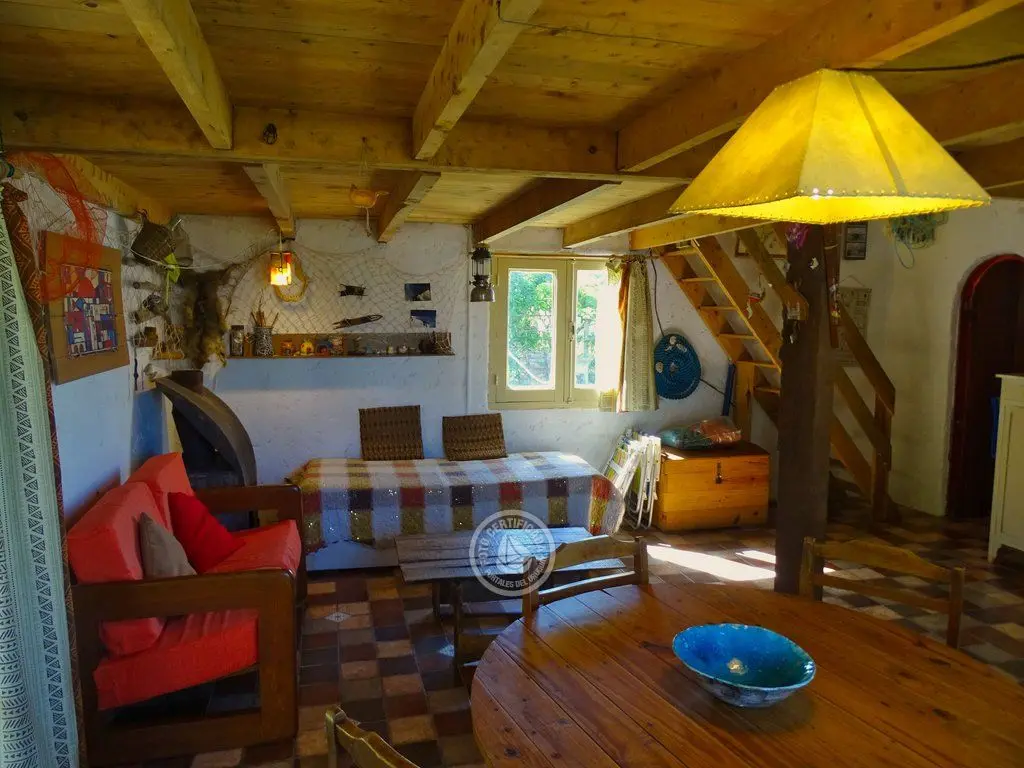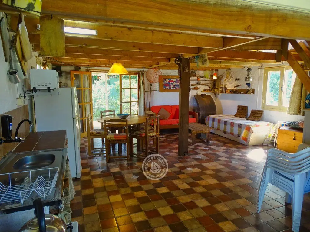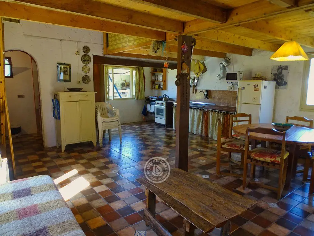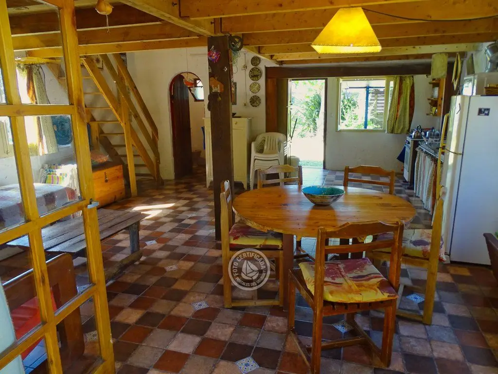 cabaña tipo loft, con 543mt2 de terreno, barbacoa, OSE, UTE, calefón, microondas, cocina combinada, 2 dormitorios en planta alta. Techo quinchado, entrepiso de ciprés. En planta baja, cocina comedor, living todo integrado y espacioso. Zona tranquila.
