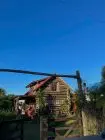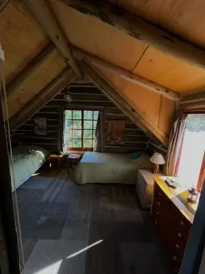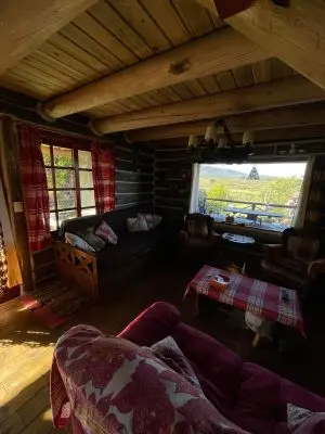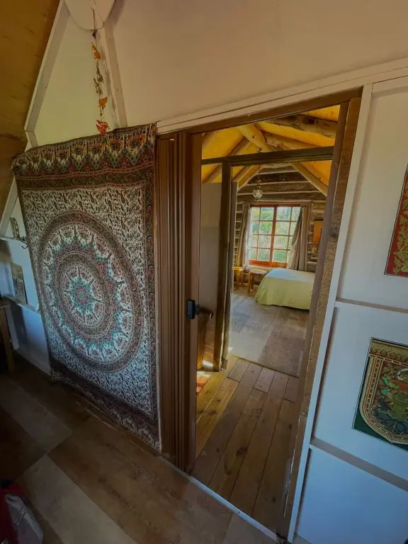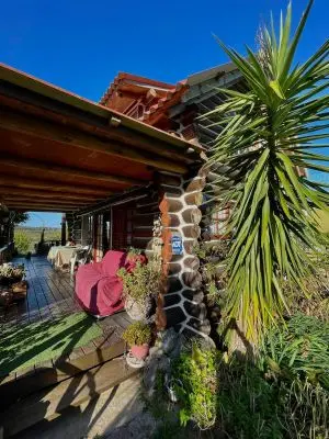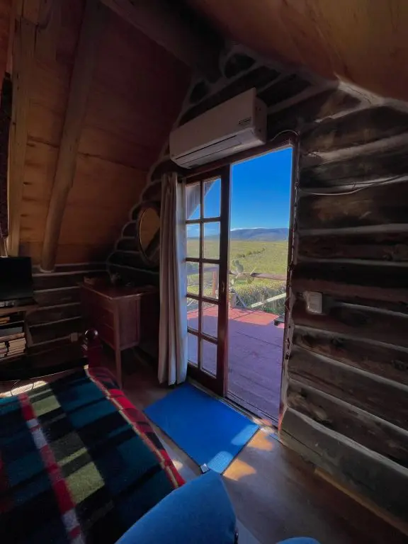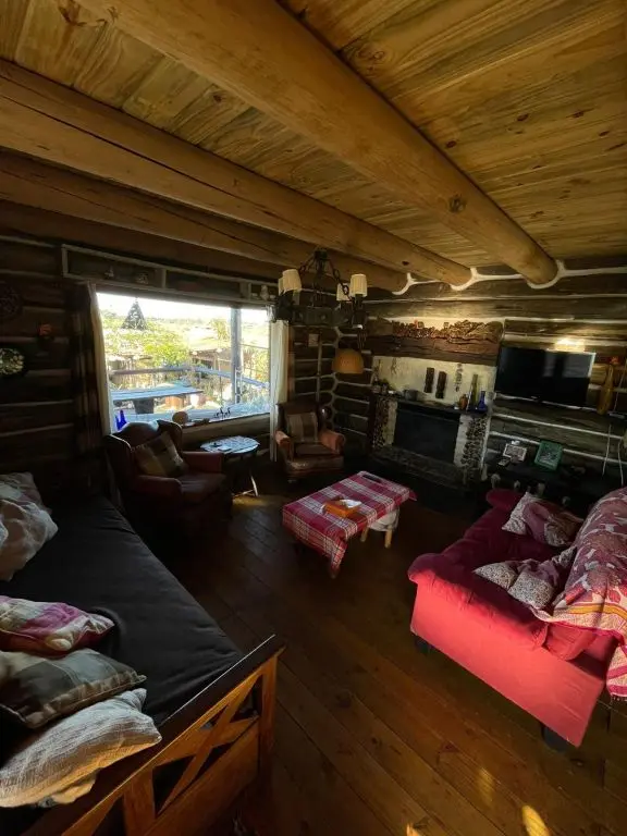 Cabaña de troncos con vista panoramica a la Sierra de las Animas y castillo Pitamiglio, lugar ideal para el descanso.