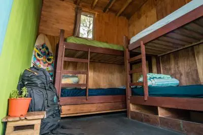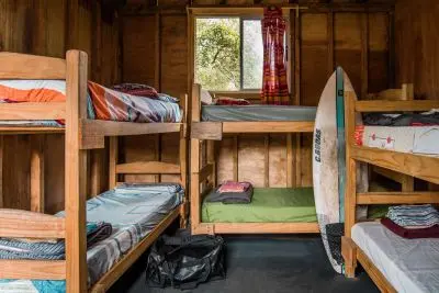 Dorms for 4 and 8 people, mixed or female. Breakfast, kitchen, lockers, linens. Surf lessons and board rentals, costumes and bikes.