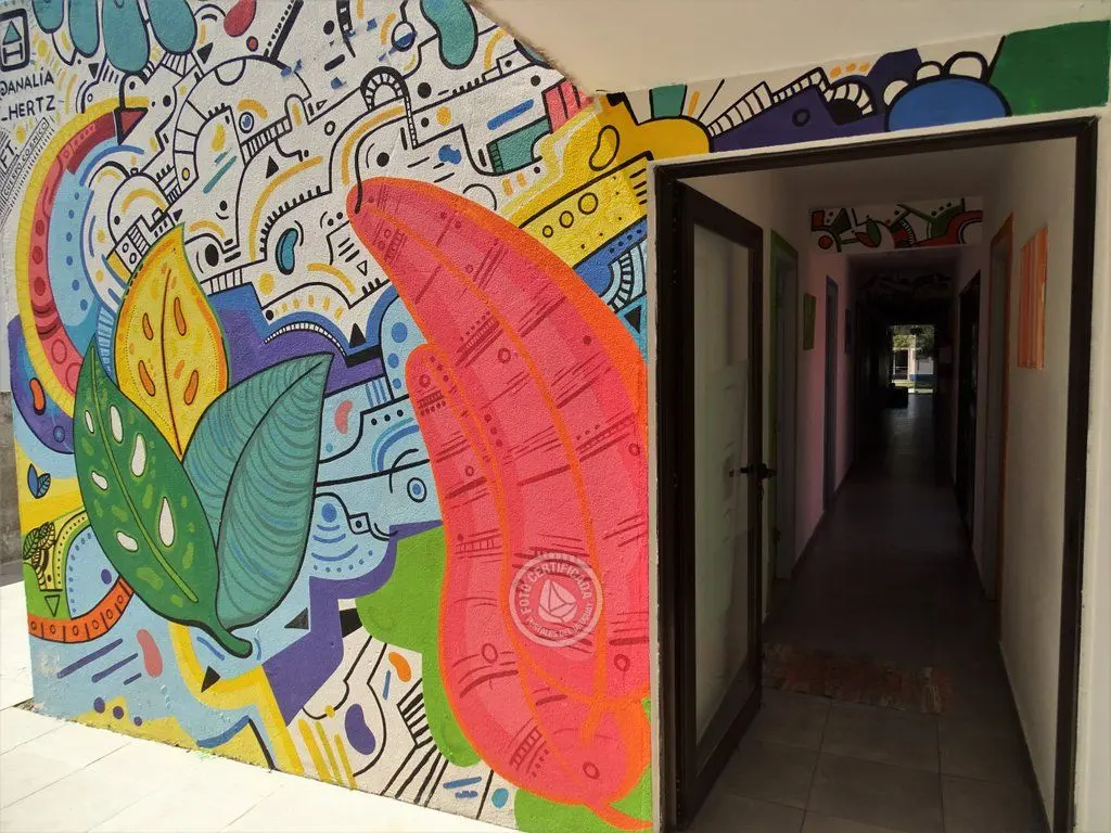 Las habitaciones son luminosas y están decoradas con tonos blancos intercalados con paredes de múltiples colores, dando un toque característico al lugar. Las habitaciones compartidas incluyen cajas de seguridad individuales para guardar las pertenencias, ropa de cama y toallas.