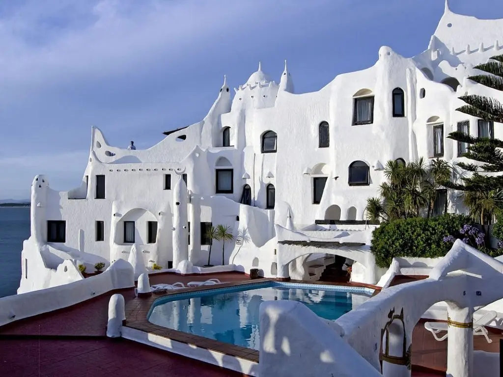 The Club Hotel Casapueblo in Punta Ballena combines art and comfort in an iconic seafront building. It offers spectacular views, a pool, spa, and a unique atmosphere, perfect for a luxurious and cultural getaway.