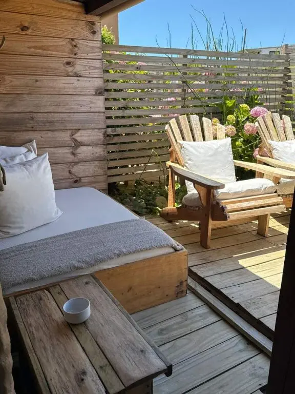 Habitaciones con cama matrimonial con patio privado y vista al Faro de Cabo Polonio. Con baño privad...