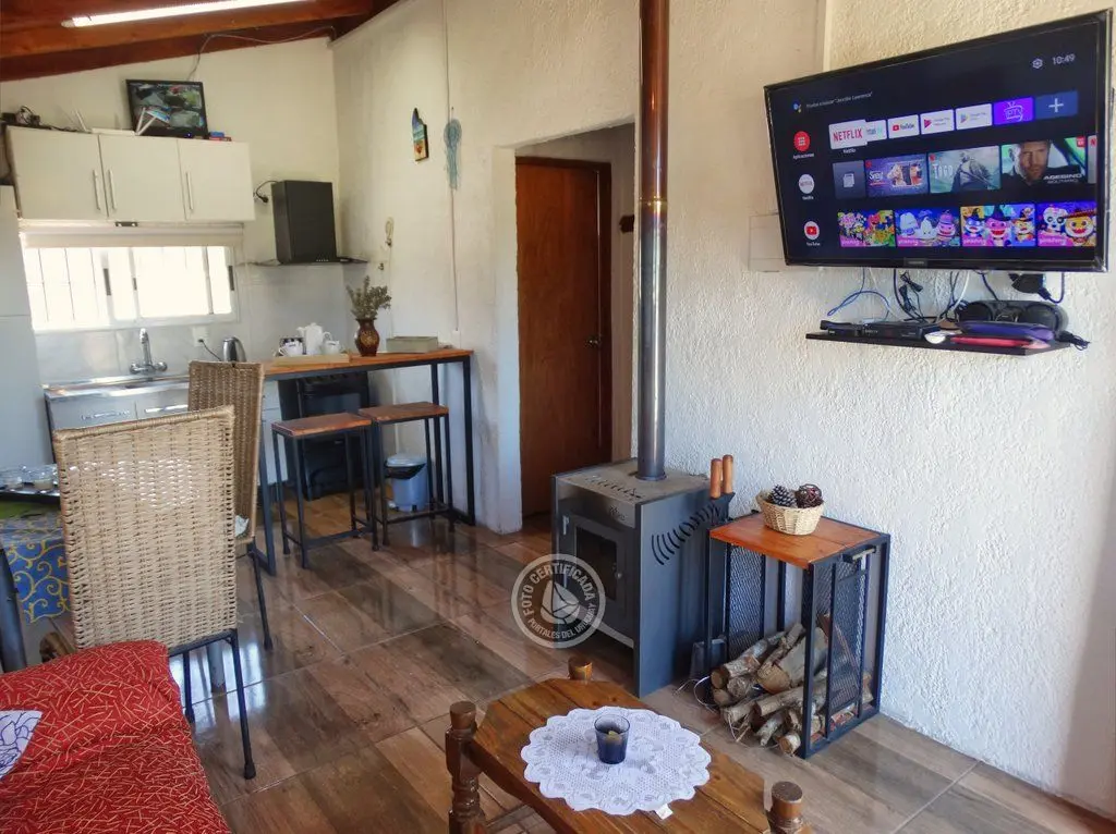 Cuenta con dos dormitorios, aire acondicionado, wifi, directv ( prepago ), alarma, camaras de seguridad, cocina totalmente equipada ( heladera con frezzer, microndas, cocina y horno a gas, licuadora, tostadora, vajilla completa ), living con estufa a leña.
