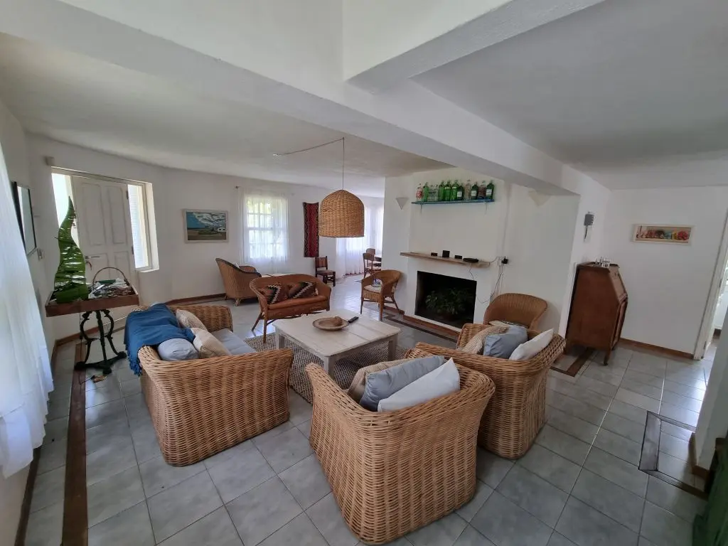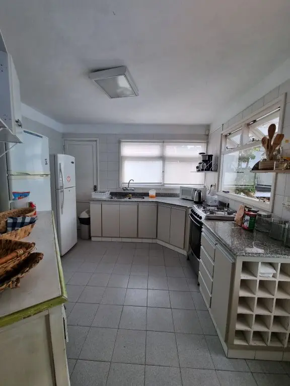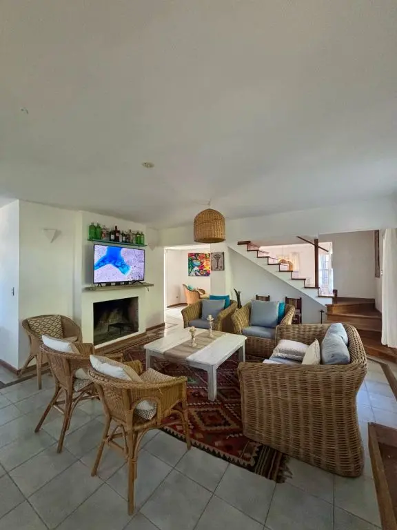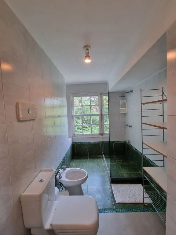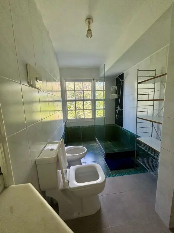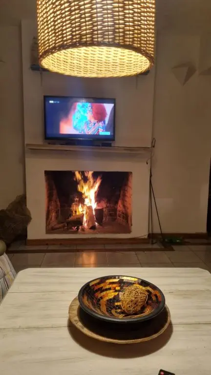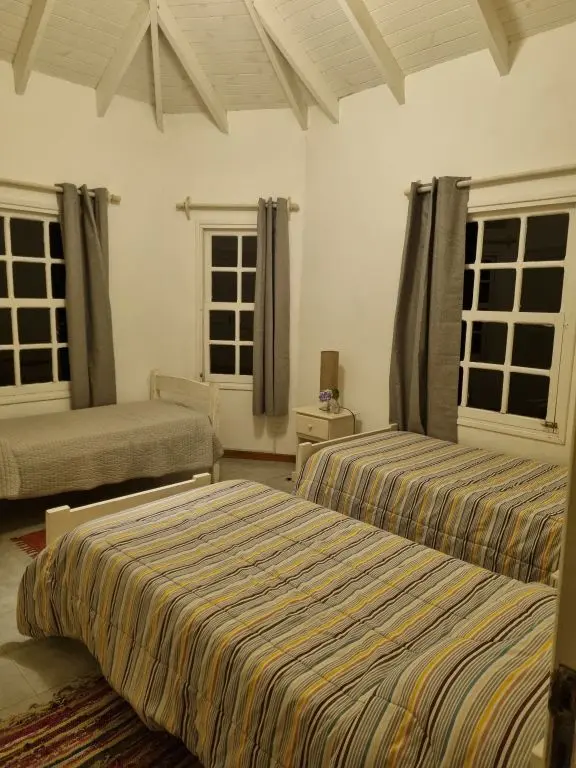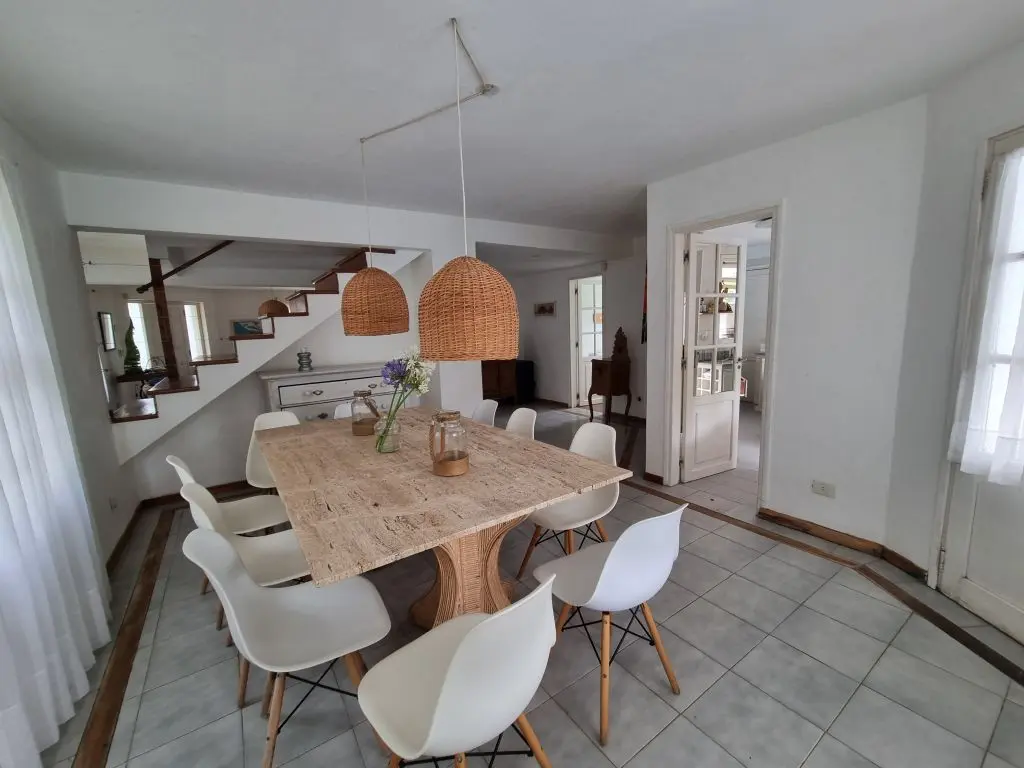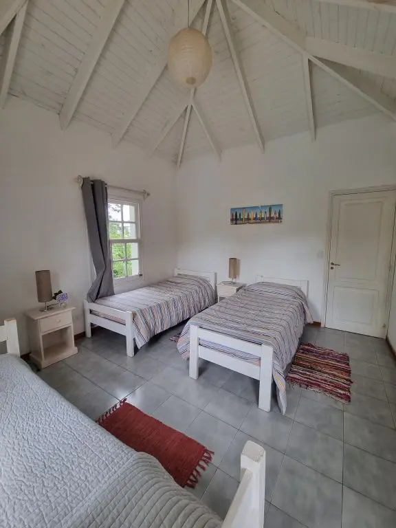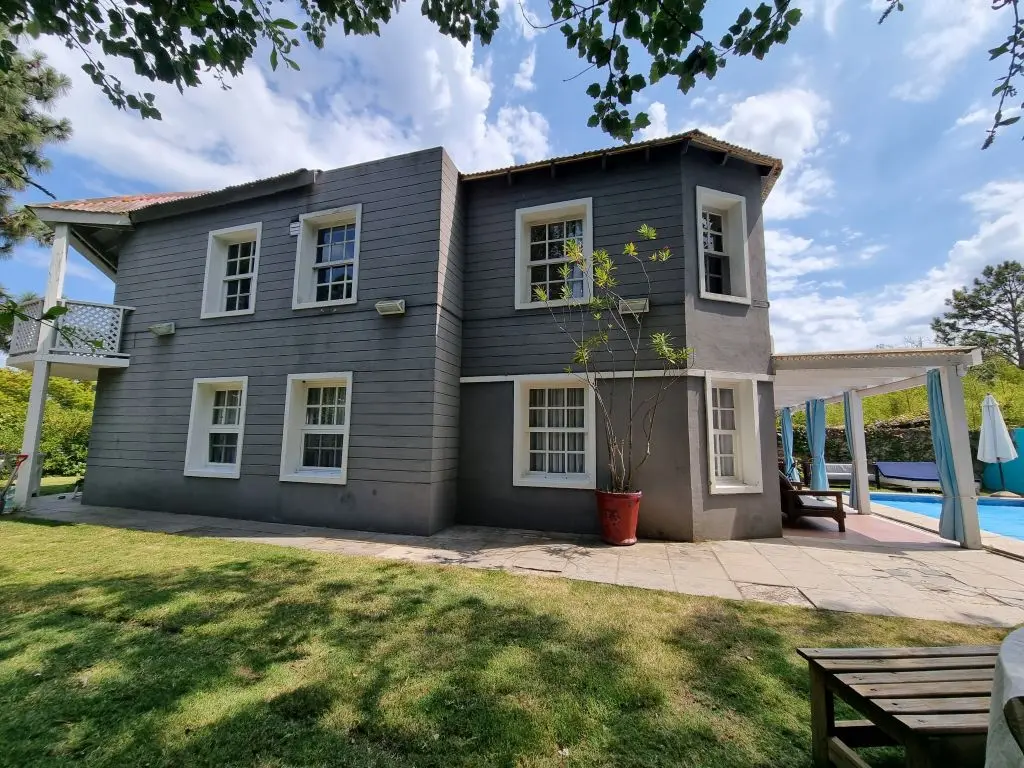 5 dormis todos con aire, piscina climatizada ,manta térmica, 3 cuartos con camas dobles y 2 cuartos con 3 camas singles cada uno , toda cercada , estufa a leña, alarma wifi ,smart tv, direct tv, cocina completa. lavarropa. parrillero techado policarbonato.