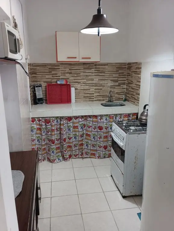 cocina ,completa vajilla comedor living ,con amplia mesa., y sillón .