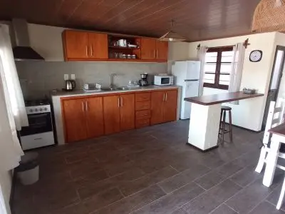 3 dormitorios (2 con aire acondicionado), 2 baños, living con estufa a leña, cocina comedor amplio y parrillero techado. Entrada para 2 autos.