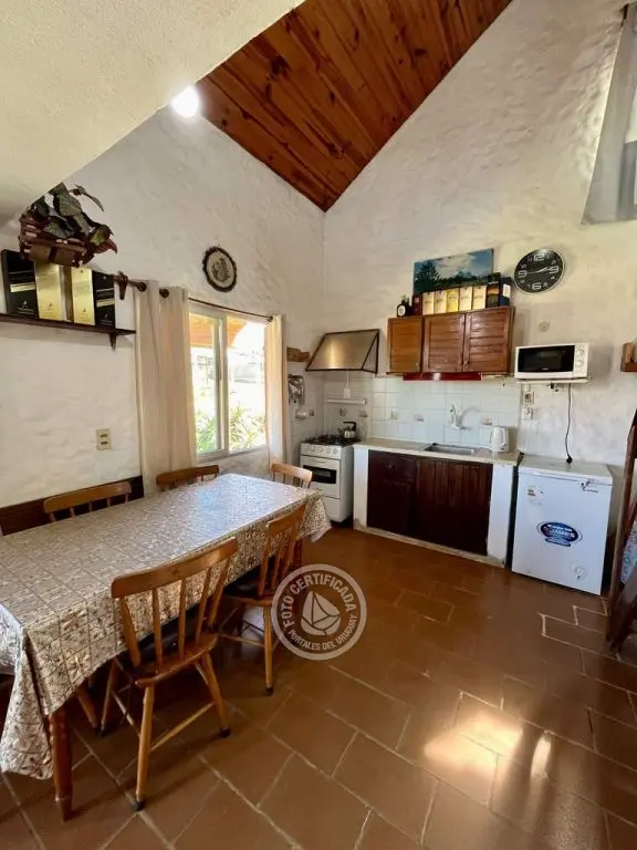 House for 6 people in the North zone. Fist floor: 1 double bedroom, living/dining room with kitchen and wood-burning fireplace. 4 single beds on the mezzanine. Barbecue at the back of the house.