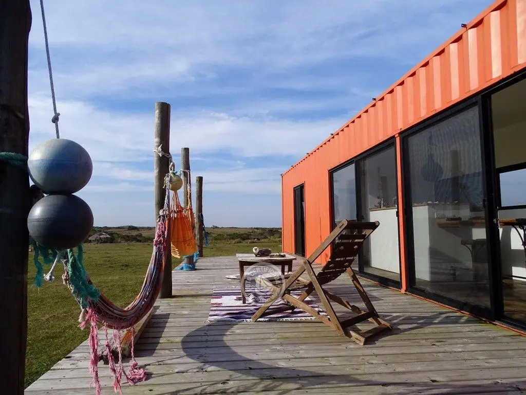 La unión del campo y la playa hacen de este lugar un paraíso único. Ruta 10 km 250 a metros del mar está la Eco Casa Container color naranja.