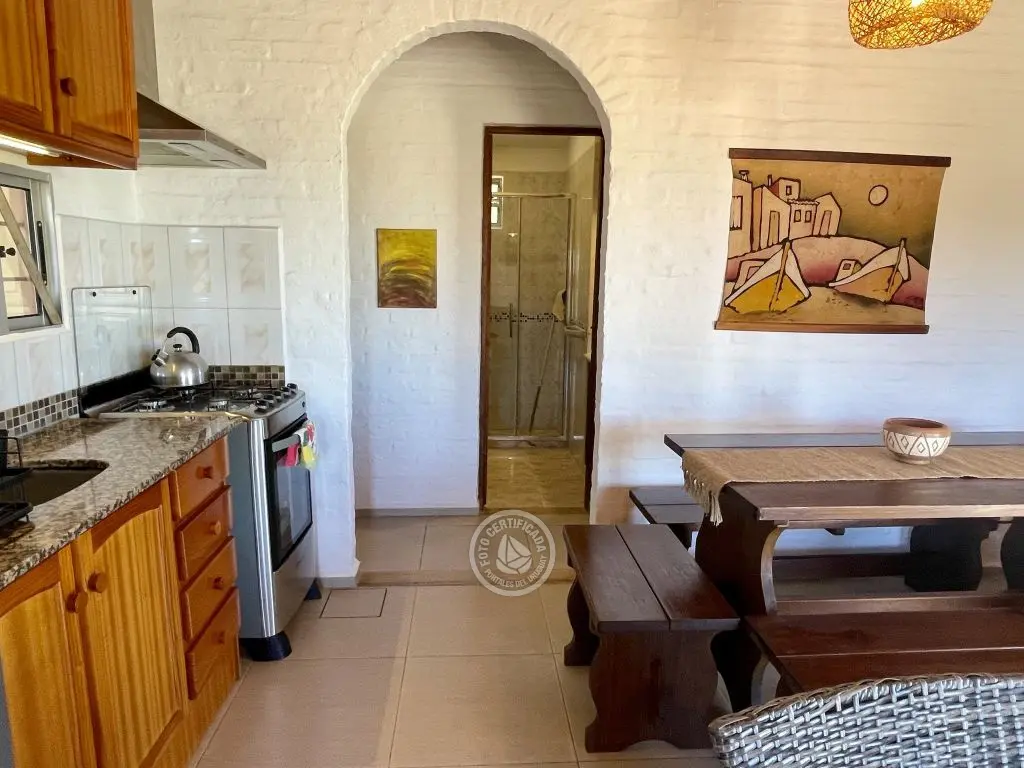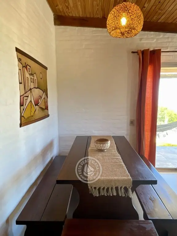 Casa para cuatro personas, ubicada frente a playa de la Viuda, con excelente vista al mar. Está a 250 metros del agua, luego de una caminata por los médanos.