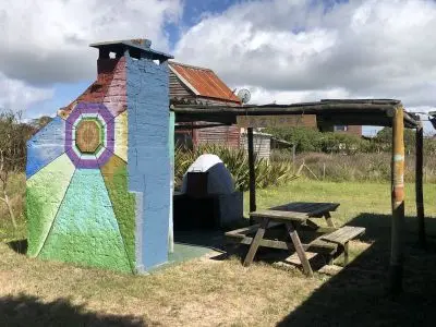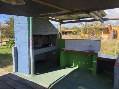EXCELENTE CABAÑA PARA 7 PERSONAS, a 50 mts de la playa capacidad y equipamiento completo para, 2 dormitorios uno abajo independiente con una cama de matrimonio y otro arriba con 5 camas chicas, luz y agua corriente wi fi, heladera con freezer, calefon , microondas, cafetera, hermosa barbacoa con horno a leña y parrillero , terreno muy grande, arbolado, entrada para autos y mucho espacio verde