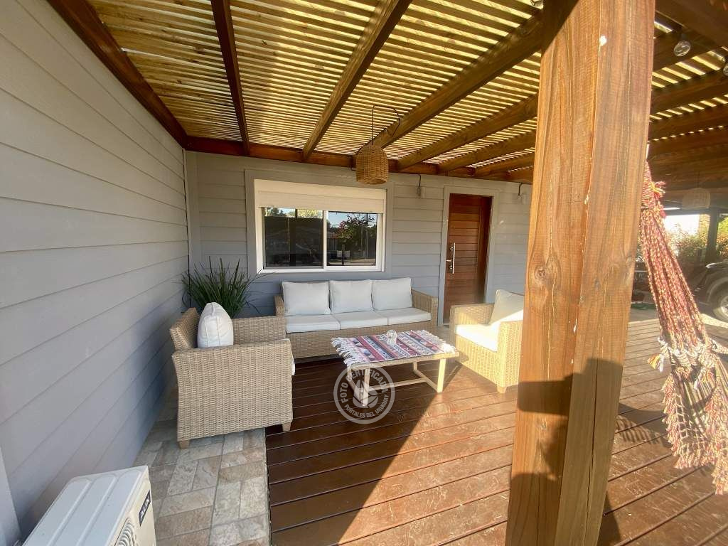 Casa para 5 personas,ubicada en Playa Los Botes.Tiene patio cerrado con césped,parrillero y lugar para el auto techado,además de un deck también techado con sillones donde pasar un lindo descanso en flia o con amigos