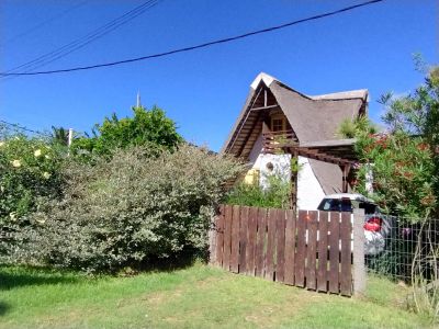 Tiene techo de quincho a dos aguas (bien mantenido), y consta de dos niveles: en la planta baja se encuentra el living (con dos camas individuales), con estufa a leña; la cocina, con amplios ventanales hacia el parrillero, separada de la mesa comedor para ocho personas por una barra con mesada de pino tratado natural, cocina a gas, heladera, microondas y aire acondicionado. En la planta baja también se encuentra el baño, que tiene botiquín, duchero y bidet.