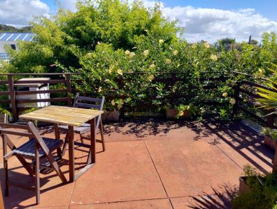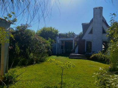 Cuenta con jardín delantero y trasero totalmente cercados, con variedad de flora mayormente nativa, y amplias puertas ventanas que dan a un deck en el jardín posterior, donde hay un garaje de unos 20 m2, con baño y pequeña cocina.