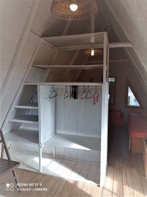 En la planta superior al que se accede por escalera de madera hay dos espacios separados por un placard abierto donde hay dos camas más una marinera de un lado, y una cama doble y otra individual del otro. Hay equipo de aire acondicionado. Capacidad total: ocho personas.