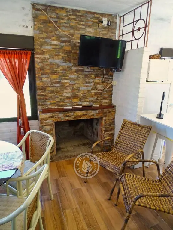 El living comedor con cómodo sofá, TV con Direct TV (opcional),parlante,aire acondicionado y estufa a leña tradicional.