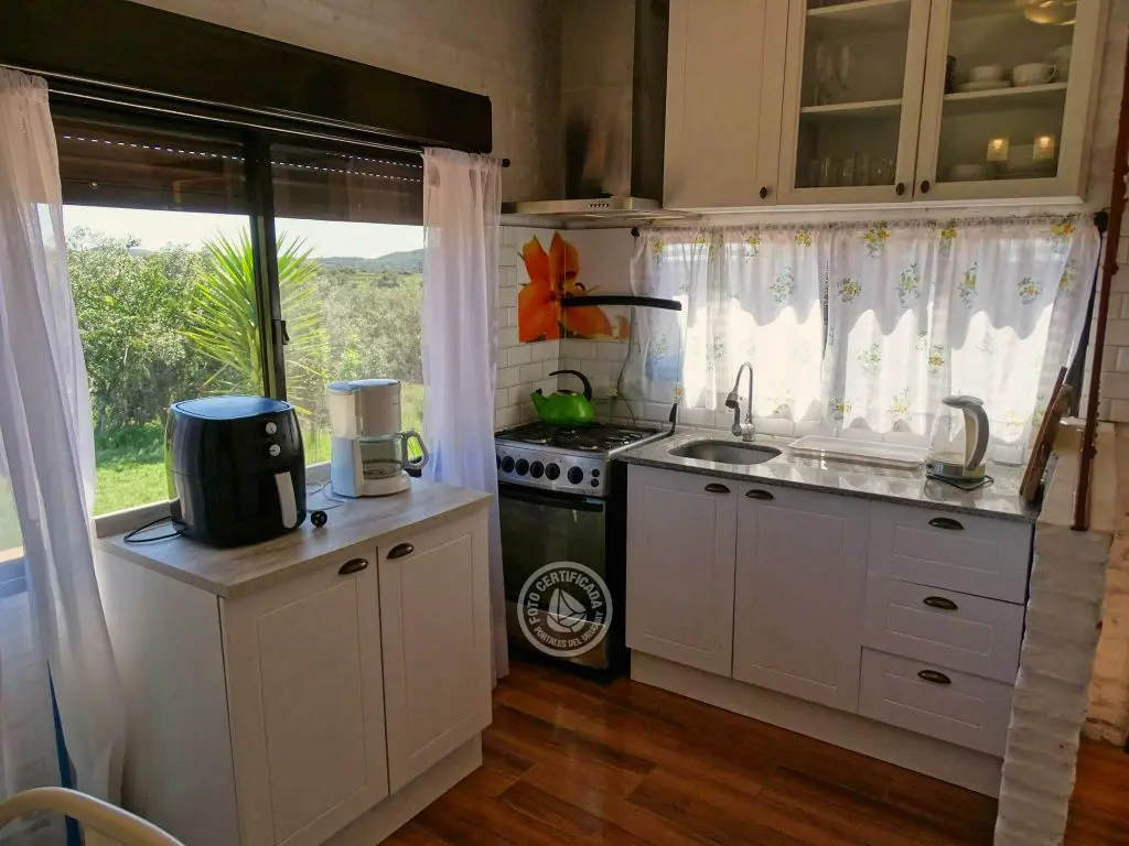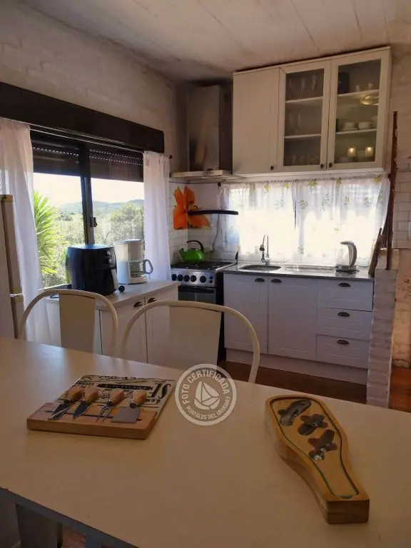 La cocina es completa:cocina a gas,heladera con Freezer,extractor,cafetera, freidora,sandwichera,tostadora,jarra eléctrica,licuadora,picadora, microondas y vajilla completa.