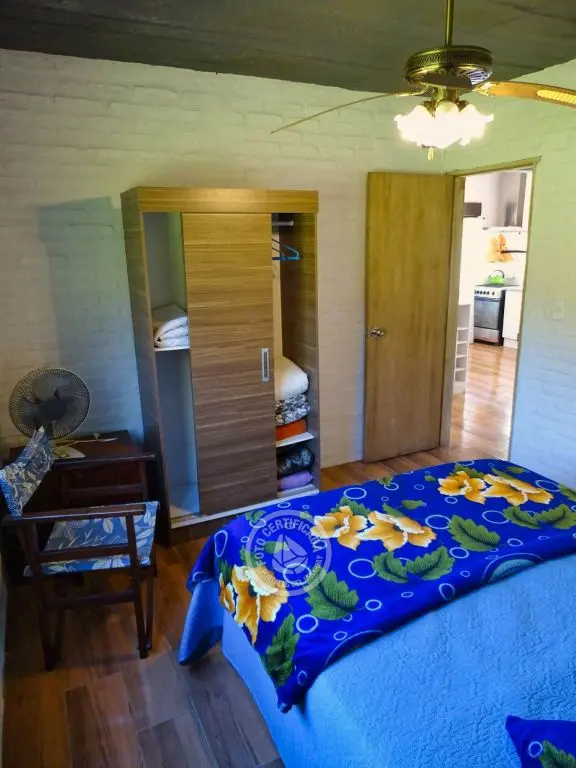 El dormitorio principal con ventilador de techo,el otro dormitorio con ventilador de mesa.
