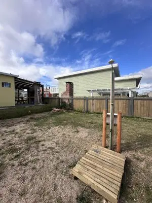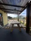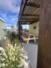 • Cochera y acceso a una galería con asador techado, mesa y sillas.