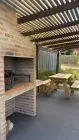 • Cochera y acceso a una galería con asador techado, mesa y sillas.