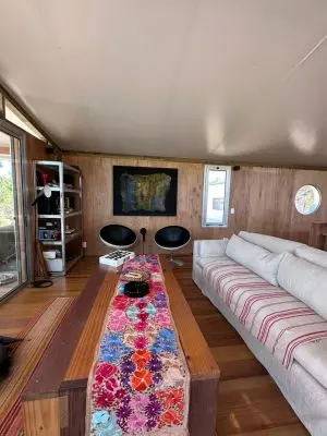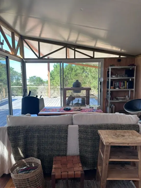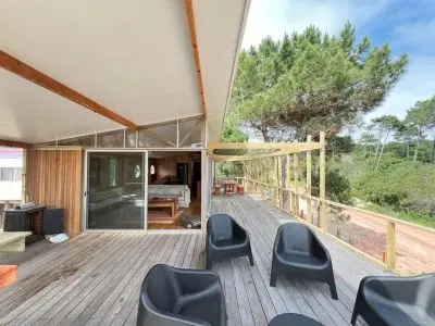 Casa de dos plantas, en el ingreso cuenta con dormitorio con habitacion con dos camas simples y un baño, subiendo por las escaleras encontramos un amplio, hermoso y moderno living comedor con sillon, cocina totalmente equipada con todo lo necesario para poder hacer uso de la misma, un segundo cuarto con cama matrimonial y baño en suite. Desde la planta alta puedes salir a respirar el aire de verano, el sonido del mar y un precioso solcito que te llena de energia.