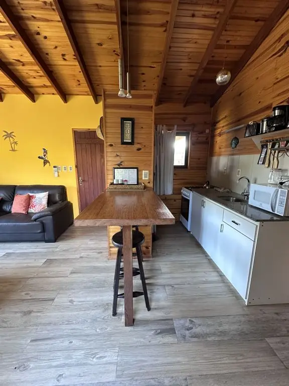 Con 1 habitación espaciosa, tranquila y luminosa, 1 baño, living comedor , enorme jardín para disfrutar de la naturaleza, parrillero techado.