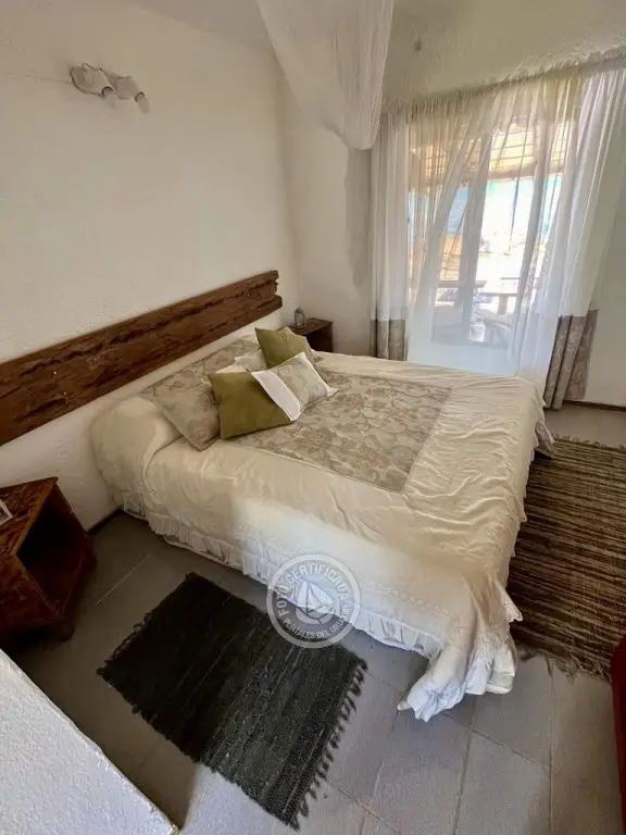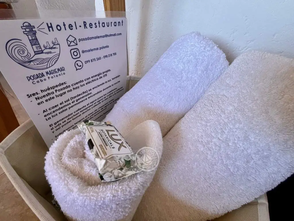Servicio de energía propia, baño privado con ducha de agua caliente y vista al mar.