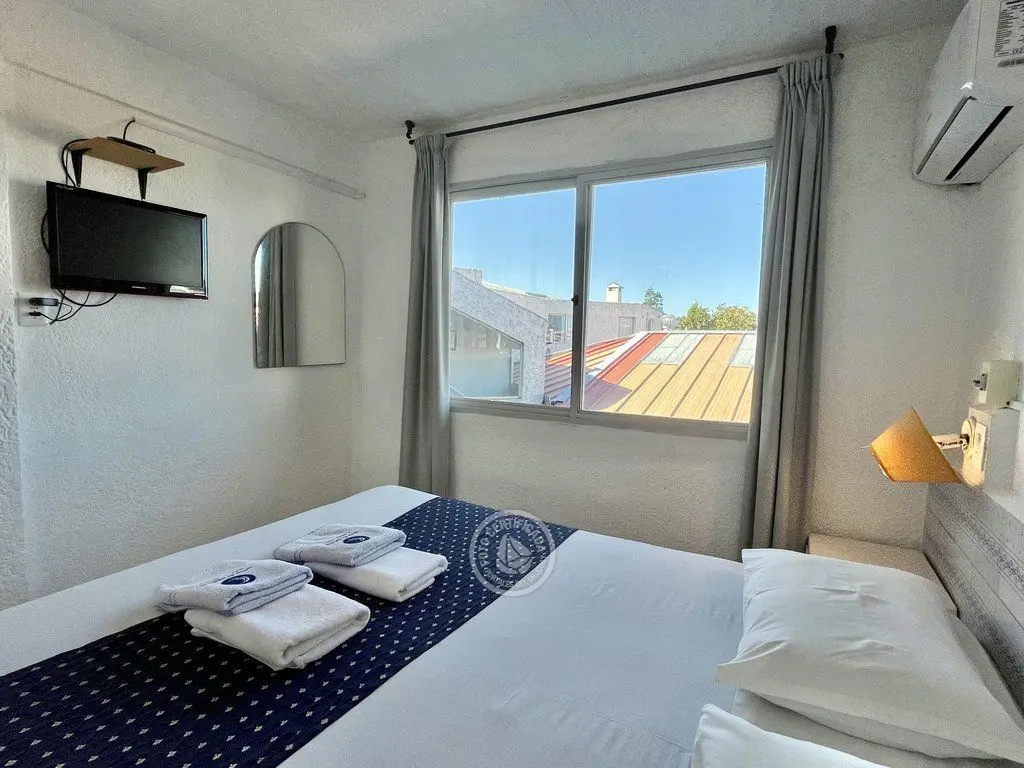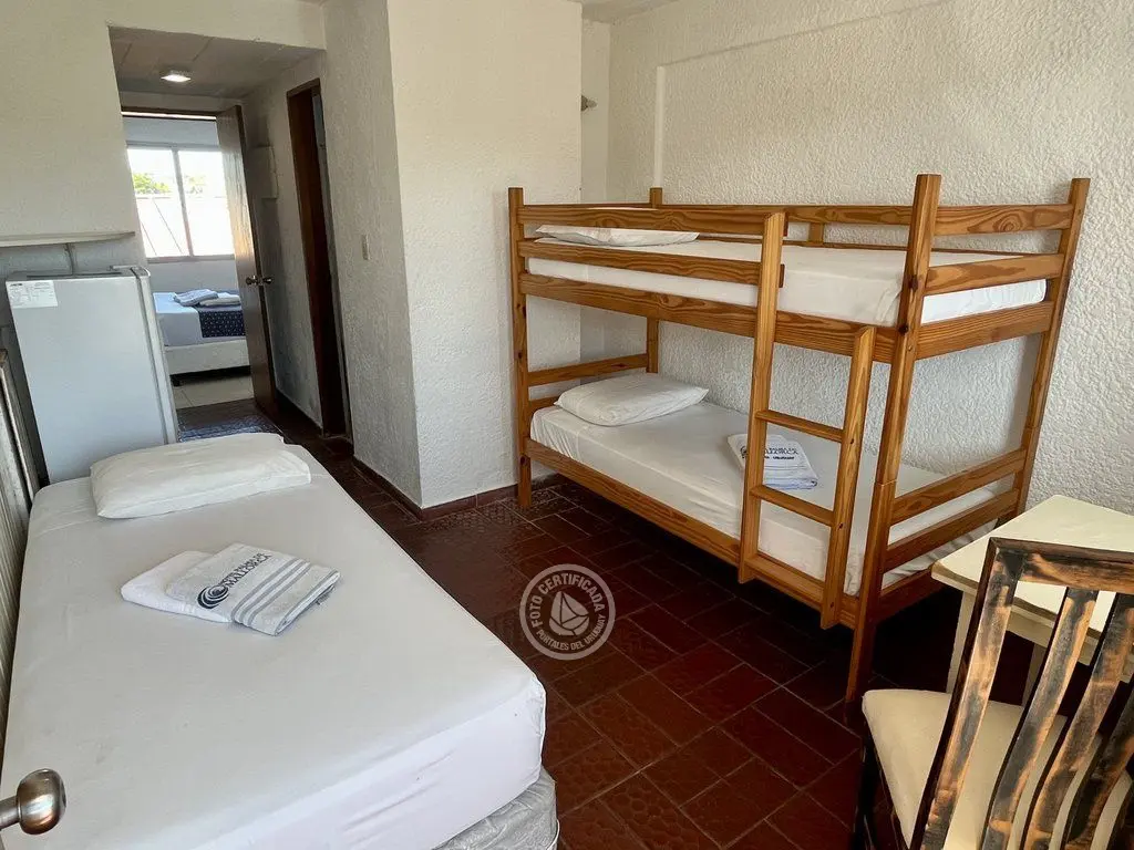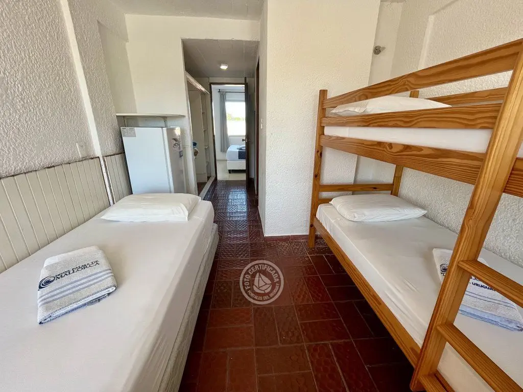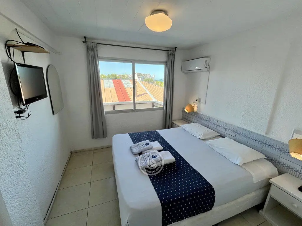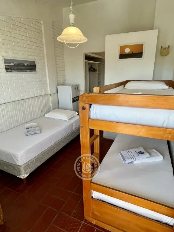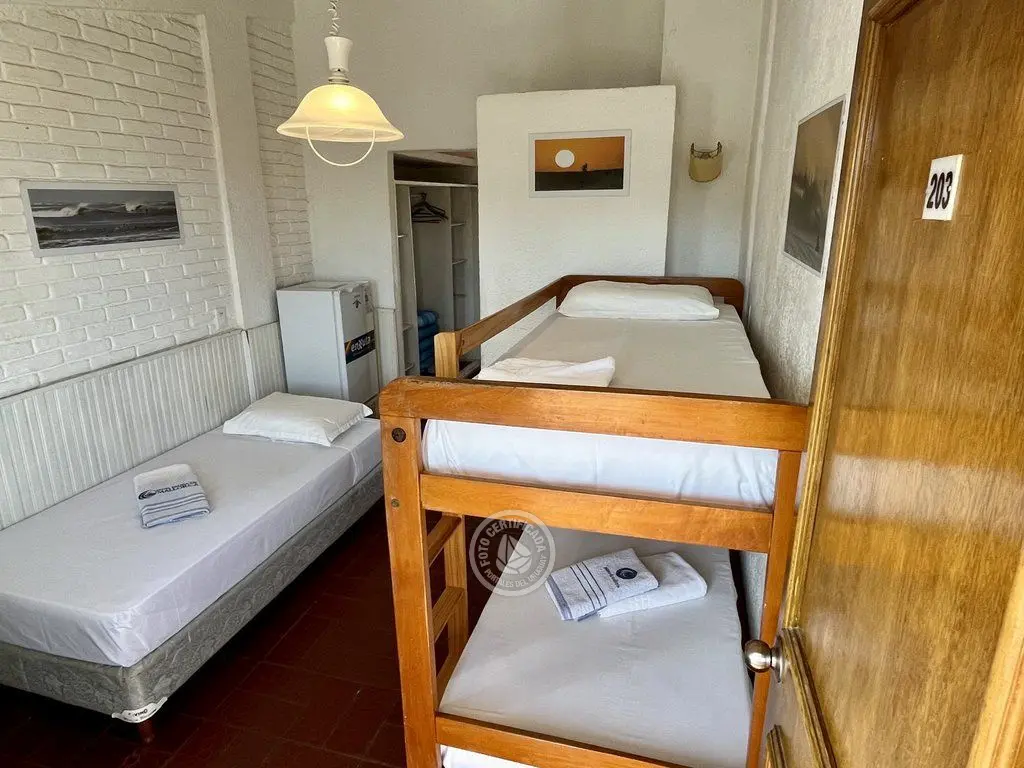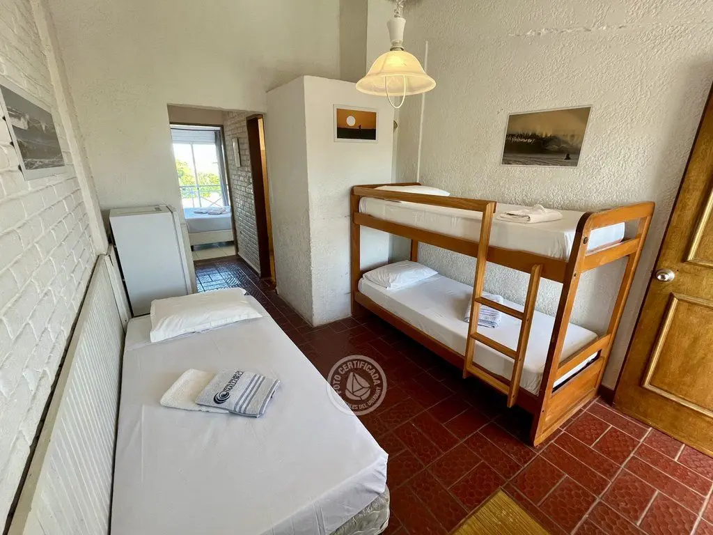 Cómodas habitaciones con aire acondicionado frio - calor, con capacidad para hasta 5 personas distribuidas en 2 ambientes (uno con cama matrimonial con sommier y el otro con cucheta y cama simple), y vista al mar. Cuentan con baño privado, frigobar y TV LED.