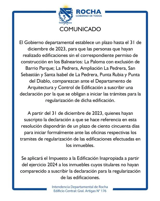 Ademas nos ocupamos de regularizaciones antes la Intendencia de Rocha, Habilitaciones Comerciales, Habilitación de Bomberos y Permisos de Dinacea.