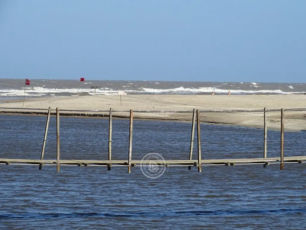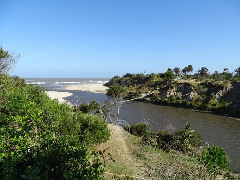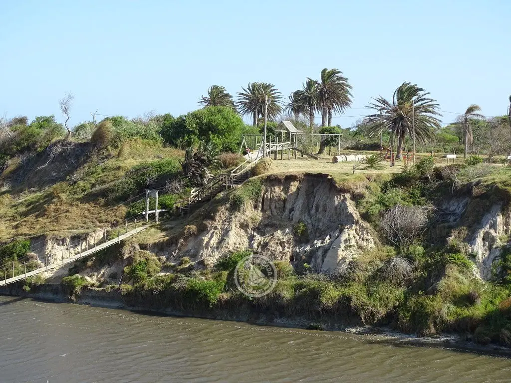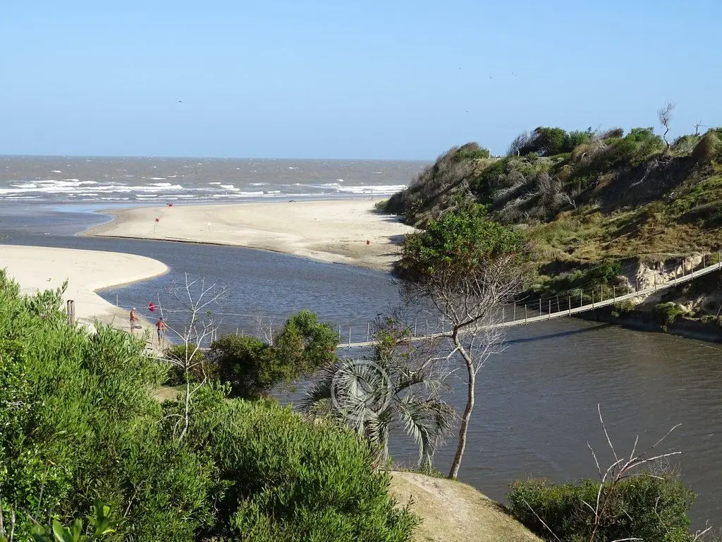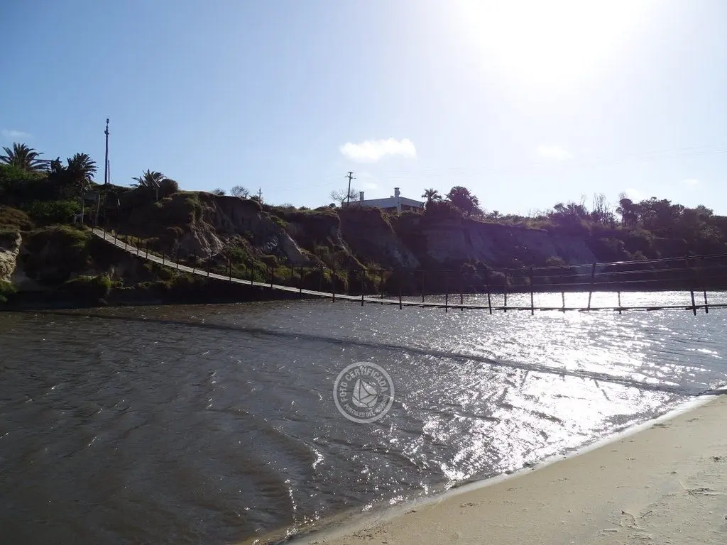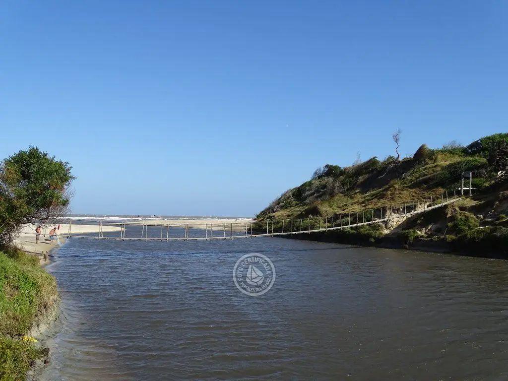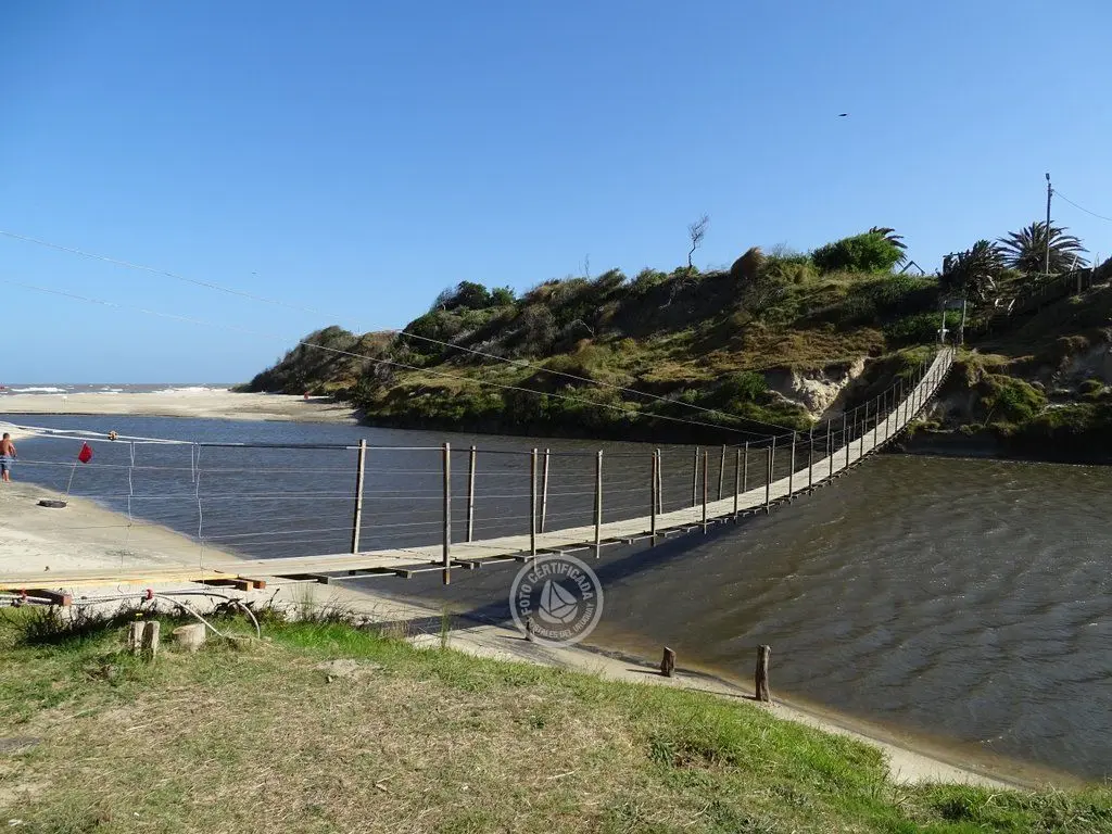 Puente colgante sobre el Canal Andreoni en La Coronilla, un lugar para pasear, relajarse y disfrutar de la vista y el entorno.