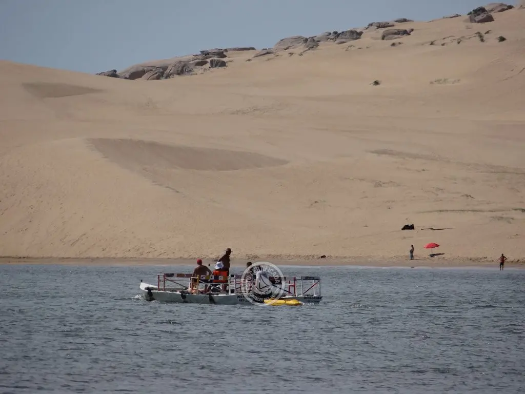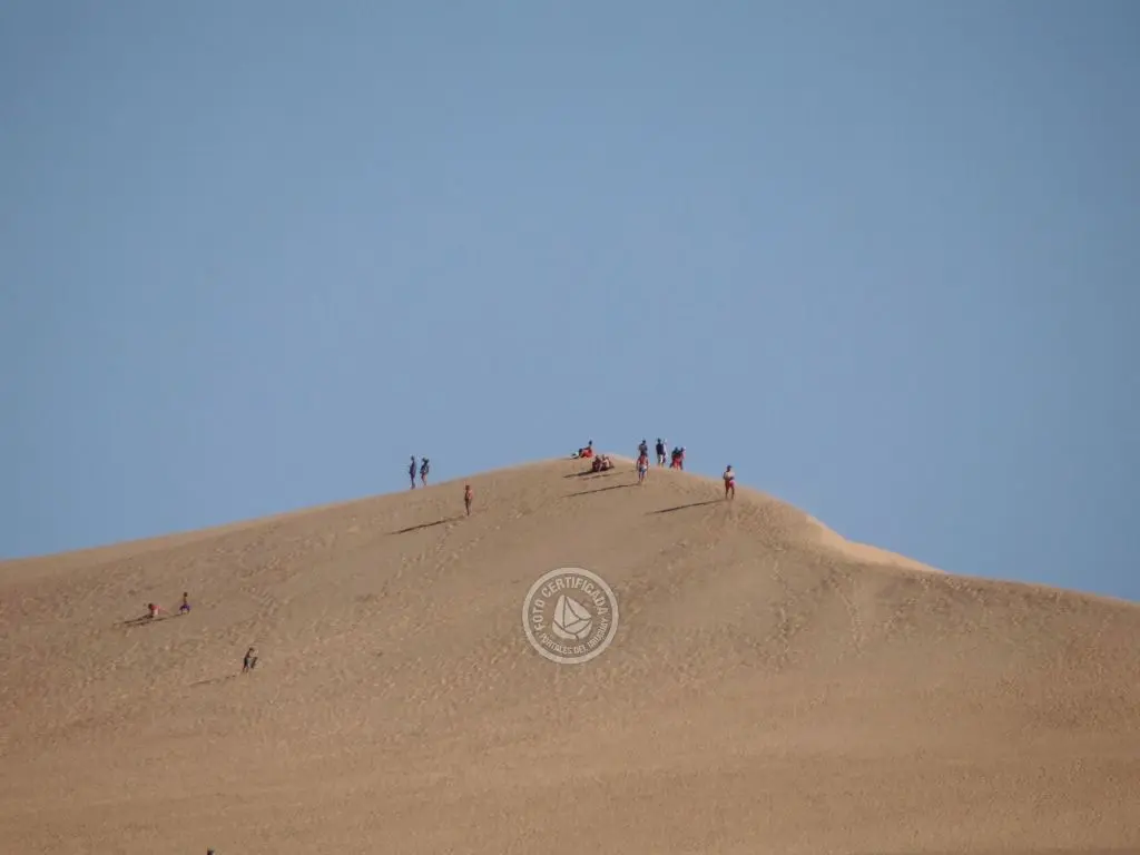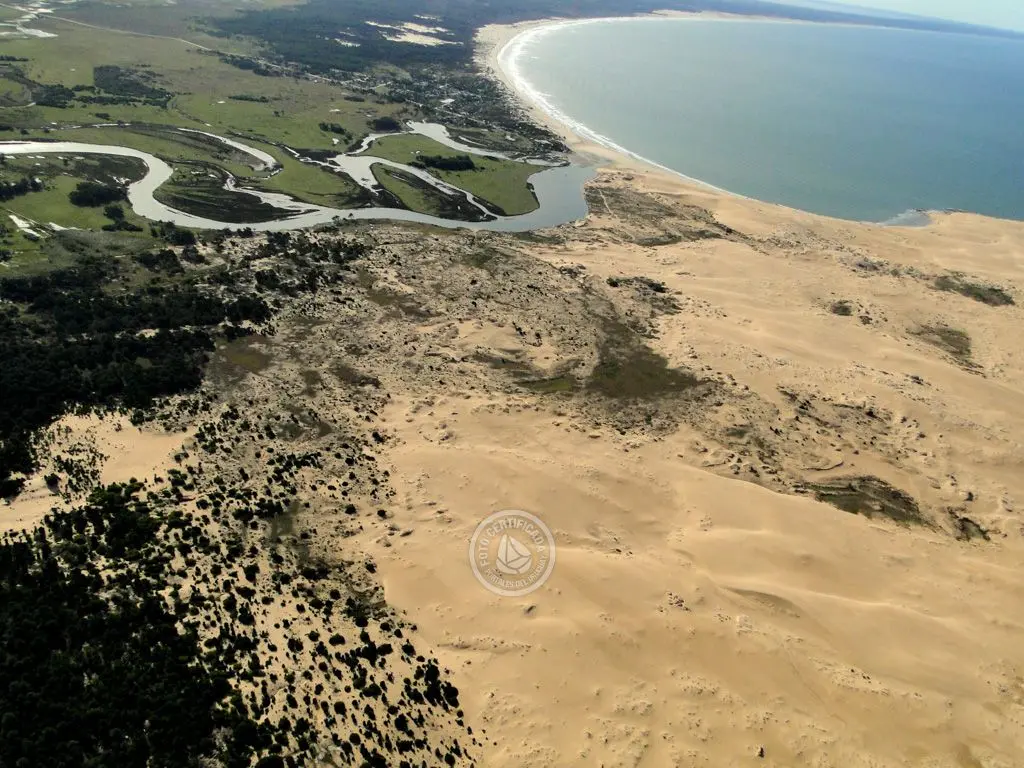 Para llegar a las grandes dunas se debe cruzar el canal en bote o a pie, según la creciente. El pico más alto es el Cerro de la Buena Vista de casi 60 metros. Su cima ofrece una panorámica del pueblo, el canal zigzagueante y la laguna que lo alimenta, Cabo Polonio y las Islas de Castillo Grande frente al cerro. Estas montañas de arena son ideales para la práctica del sandboard.