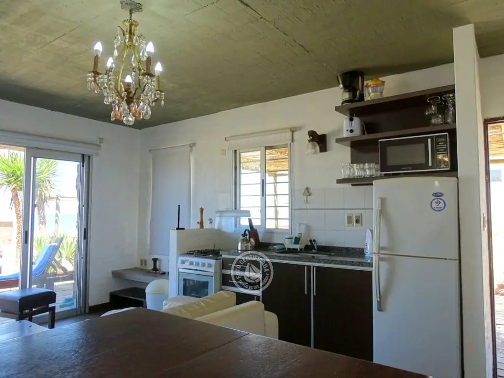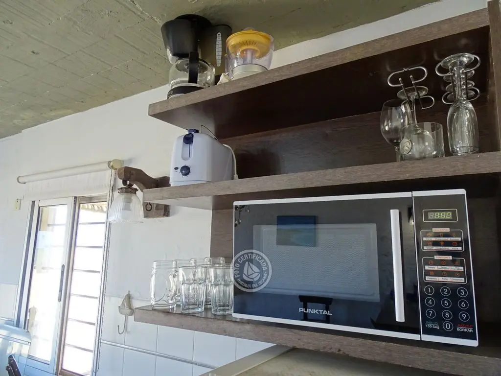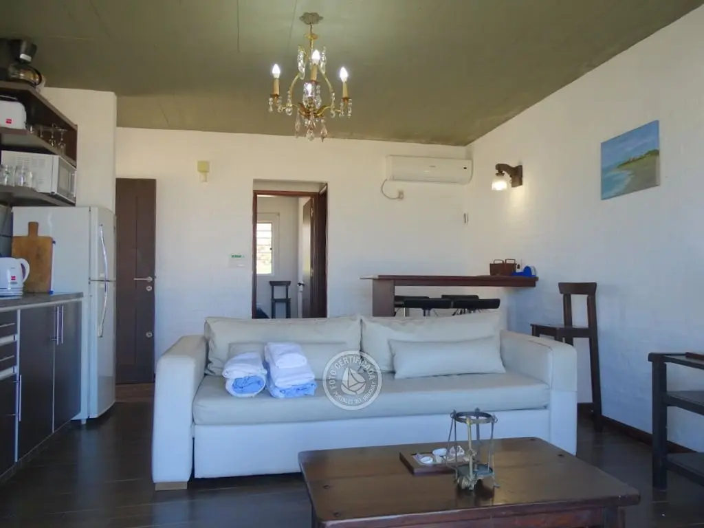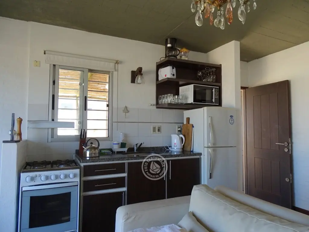 Living-comedor con cocina integrada con horno a gas, heladera con freezer, aire acondicionado frío/calor y con un sillón cama para dos personas.