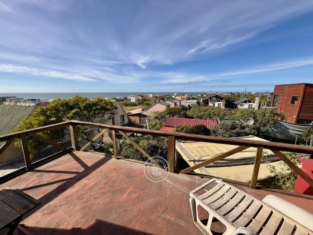 Cabaña para 2/3 personas en dos plantas con terraza y vista al mar, parrillero, Internet Wi-Fi y estufa a leña.
