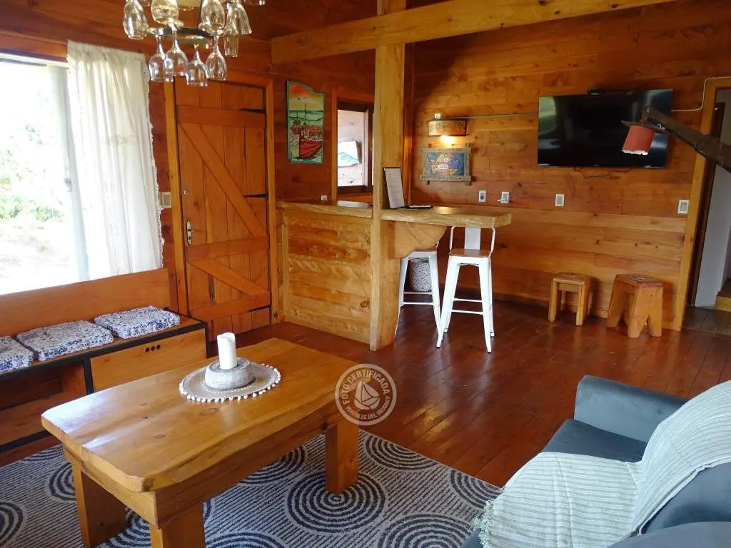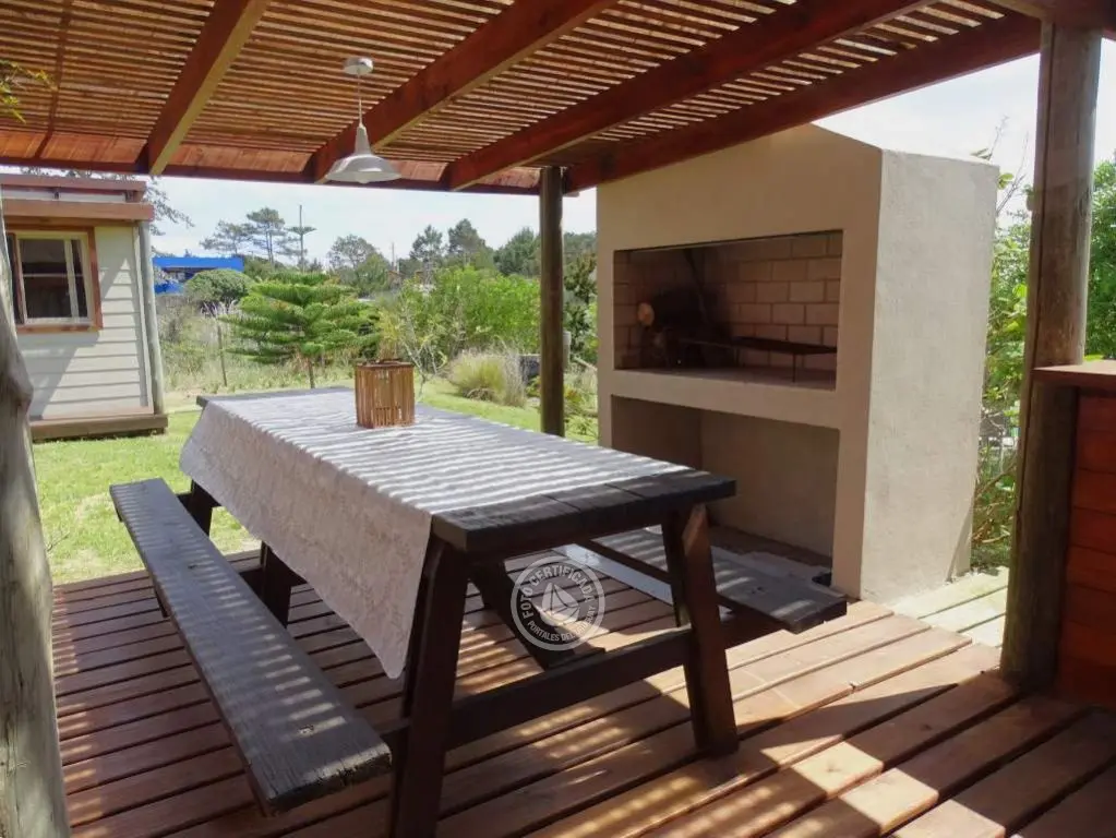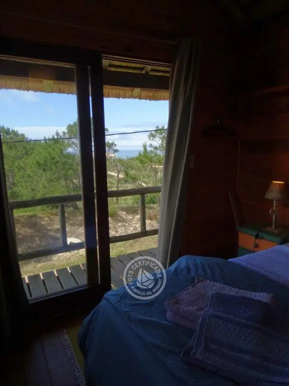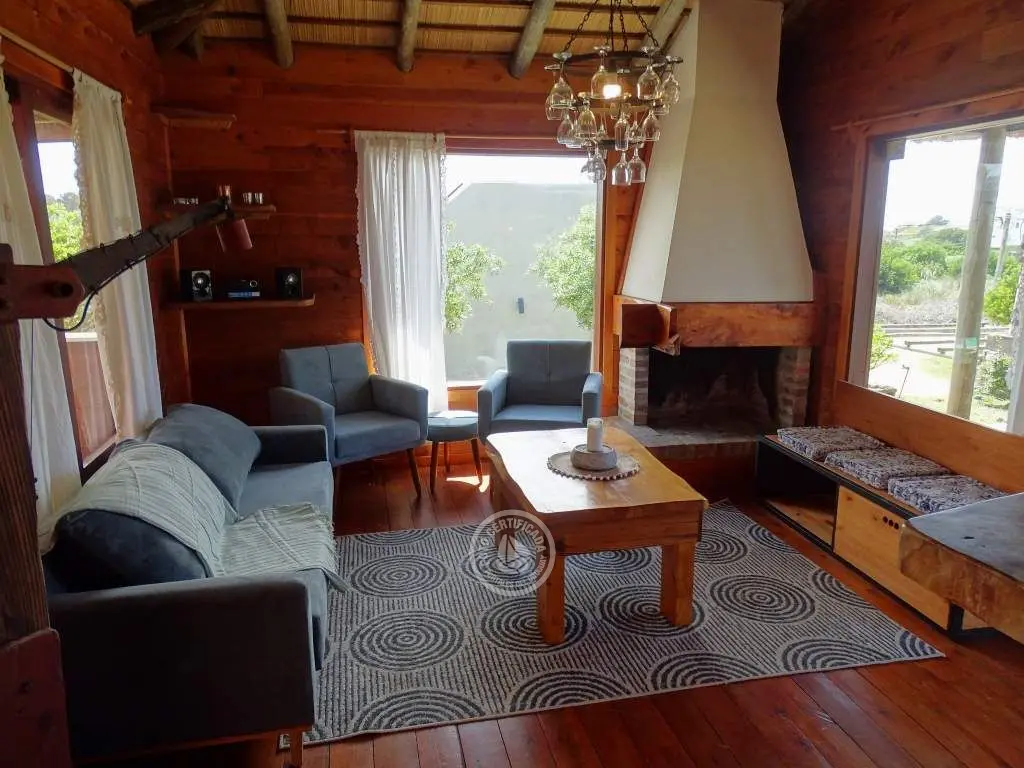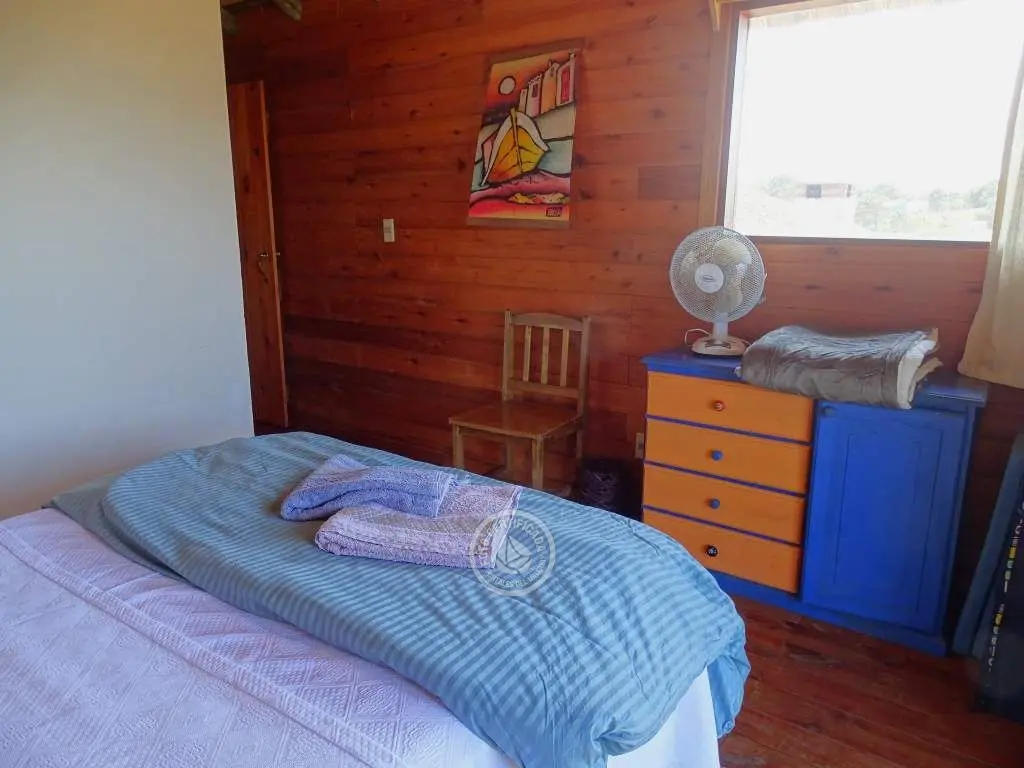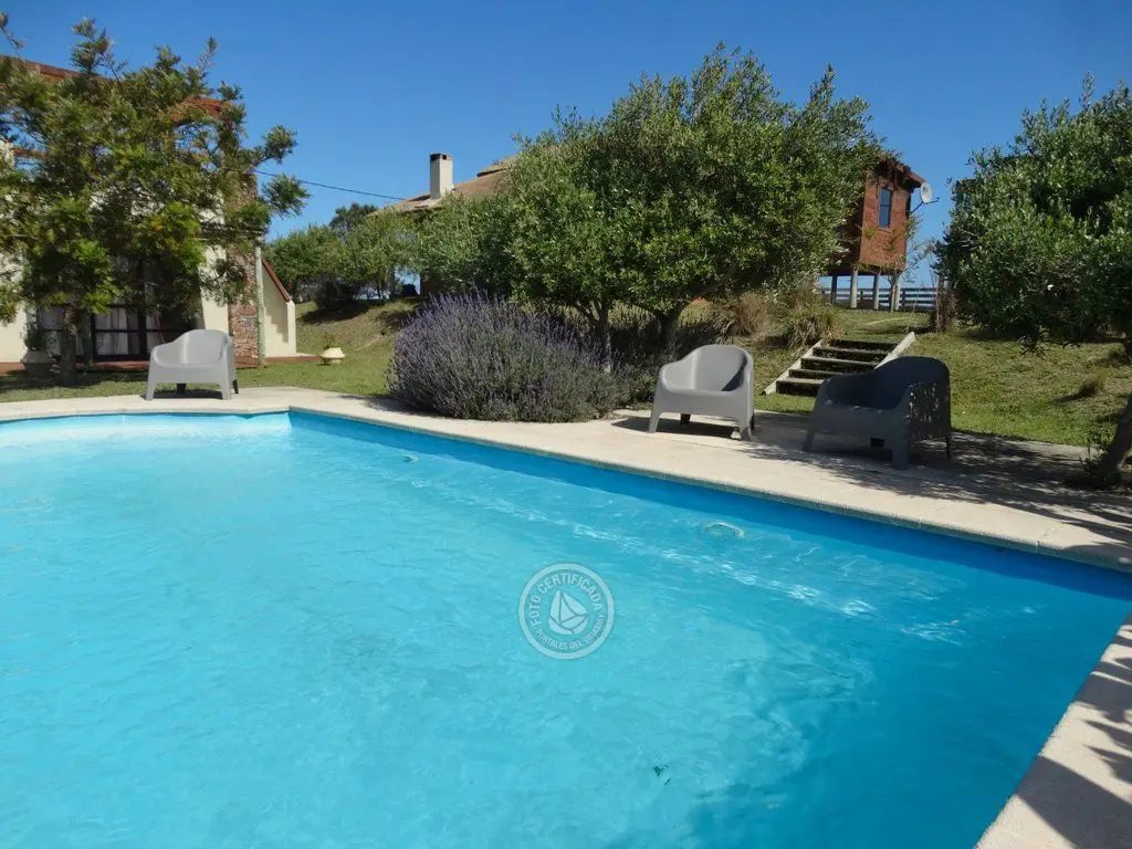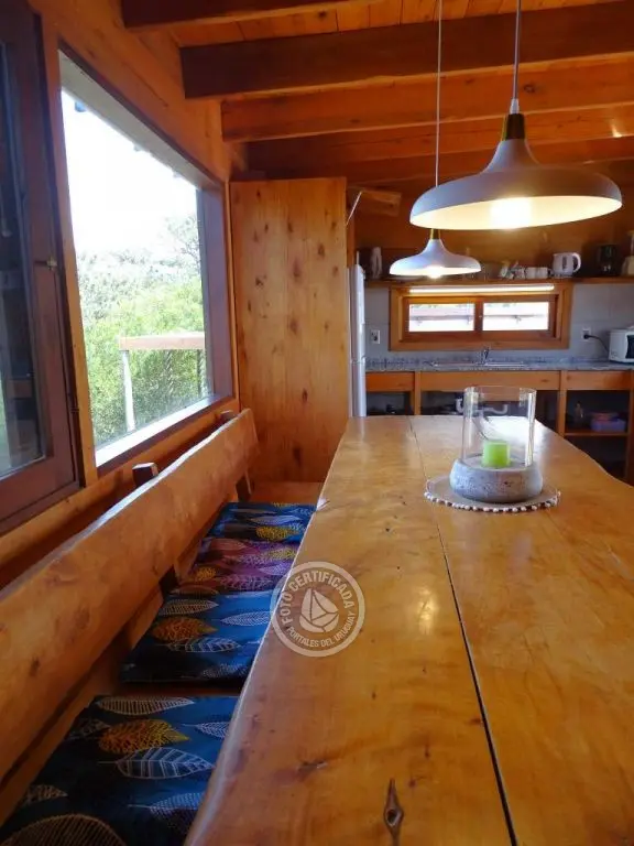 Hermosa cabaña,ubicada a una cuadra de Playa la Viuda y lejos del ruido.Con vista al mar,rodeada de un entorno natural y de tranquilidad.Ideal para 4 parejas o familias(la capacidad es de 8 huespedes, entre adultos y niños).Cuenta con 4 habitaciones(todas equipadas con ventilador) y 3 baños completos.Living con estufa a leña.Cocina completa,lavarropas y un gran salón comedor con vista panorámica y Direc TV.Afuera cuenta con un espacio de barbacoa cubierto,hermoso jardín de 1000 mtr con piscina.Wifi,estacionamiento para 2 autos y alarma.La tarifa publicada hace referencia a temporada baja.