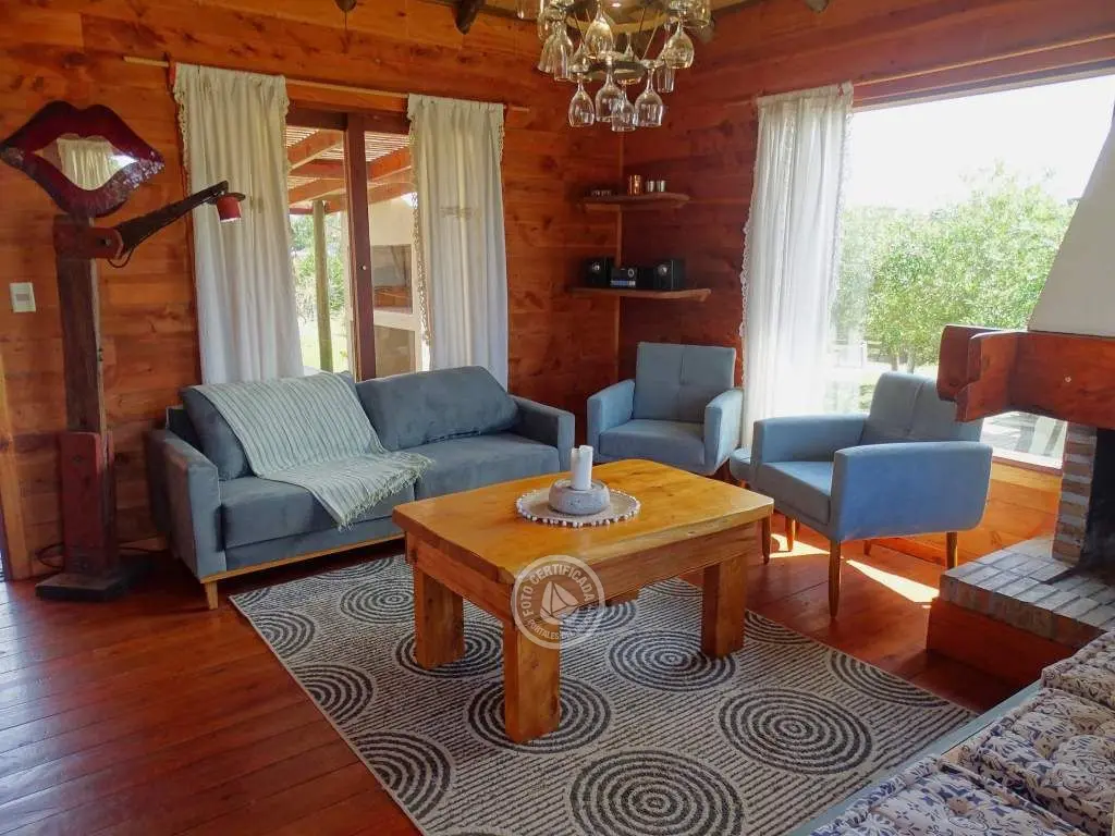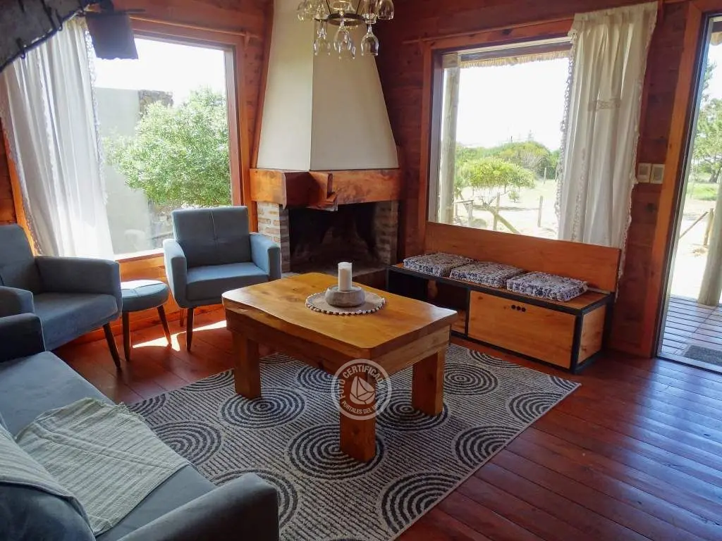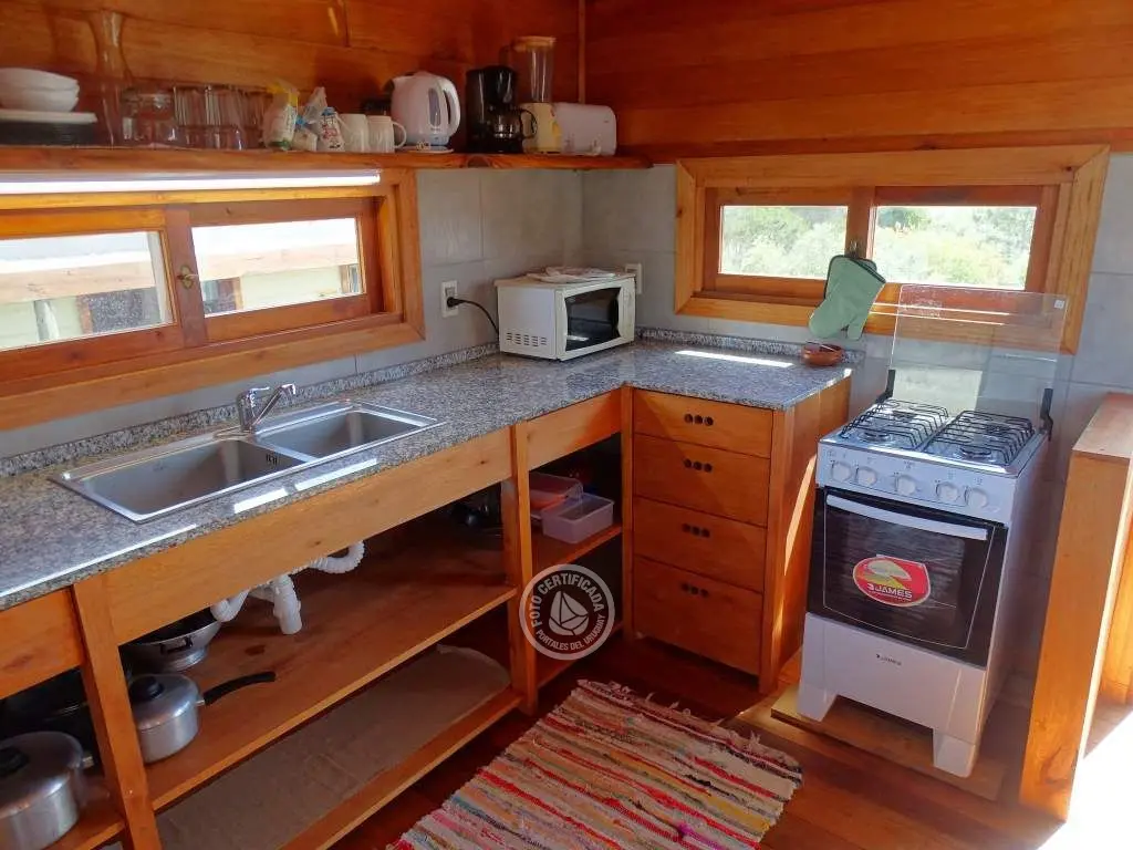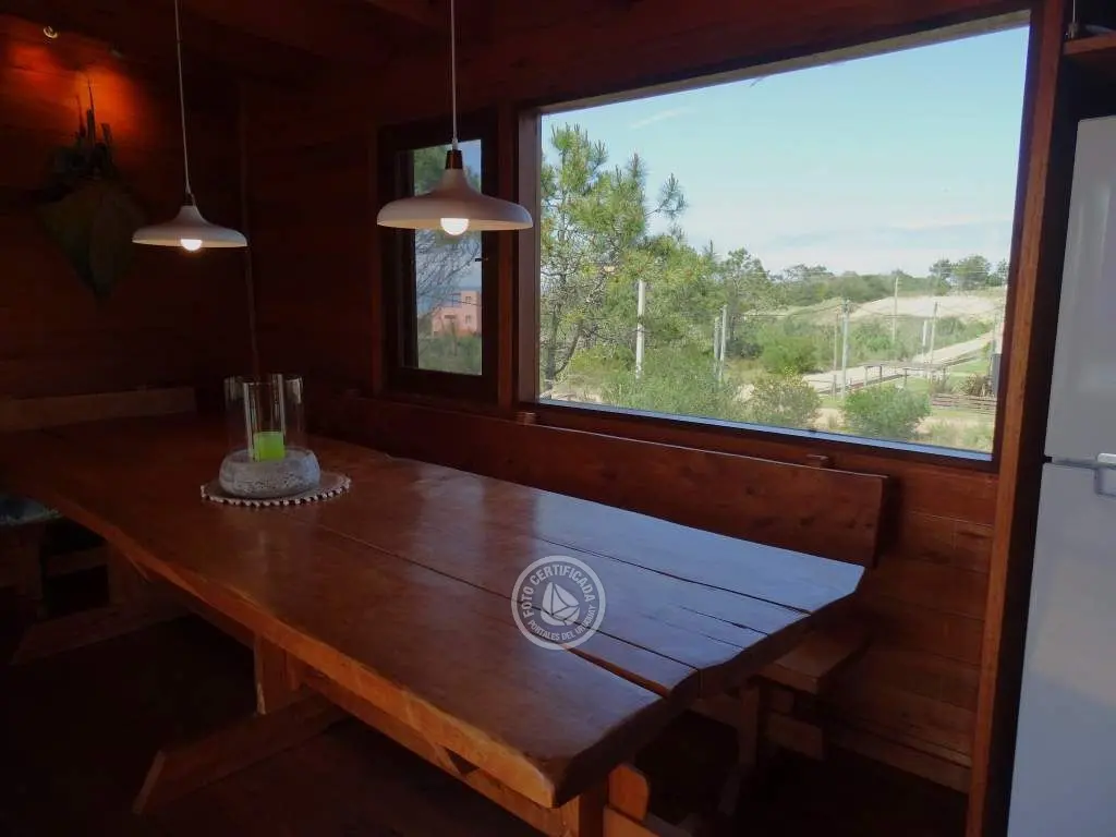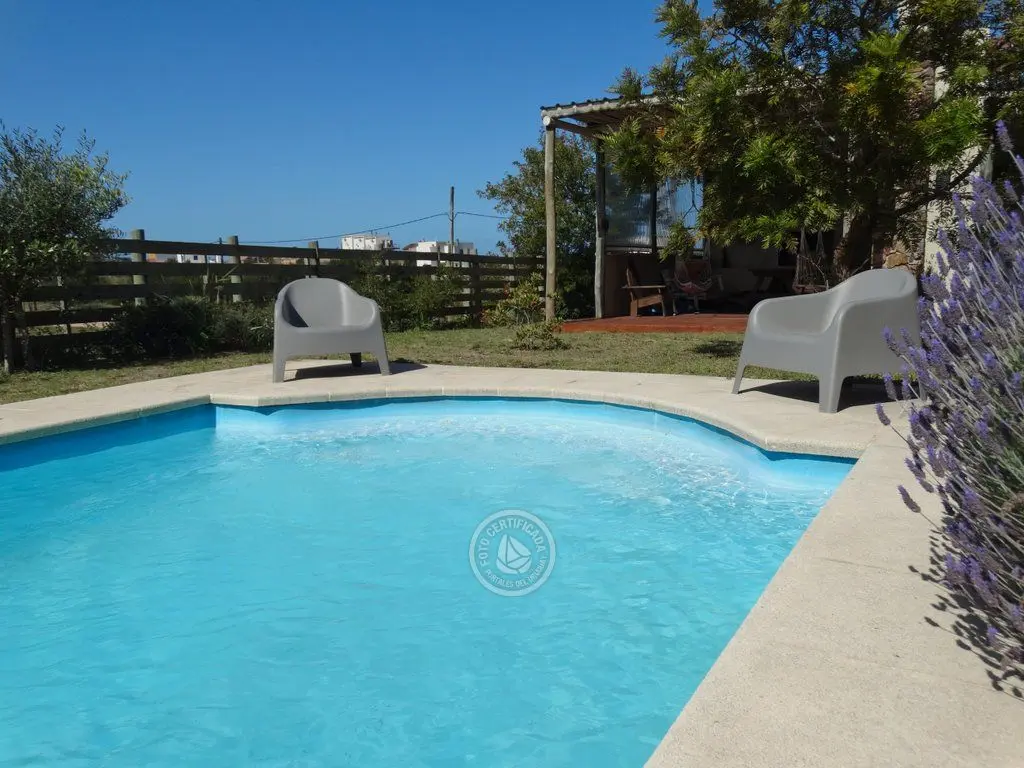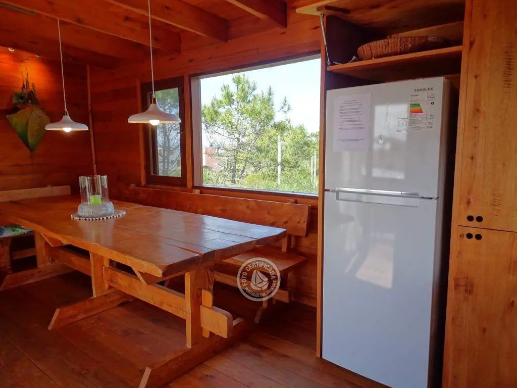 Hermosa cabaña,ubicada a una cuadra de Playa la Viuda y lejos del ruido.Con vista al mar,rodeada de un entorno natural y de tranquilidad.Ideal para 4 parejas o familias(la capacidad es de 8 huespedes, entre adultos y niños).Cuenta con 4 habitaciones(todas equipadas con ventilador) y 3 baños completos.Living con estufa a leña.Cocina completa,lavarropas y un gran salón comedor con vista panorámica y Direc TV.Afuera cuenta con un espacio de barbacoa cubierto,hermoso jardín de 1000 mtr con piscina.Wifi,estacionamiento para 2 autos y alarma.La tarifa publicada hace referencia a temporada baja.