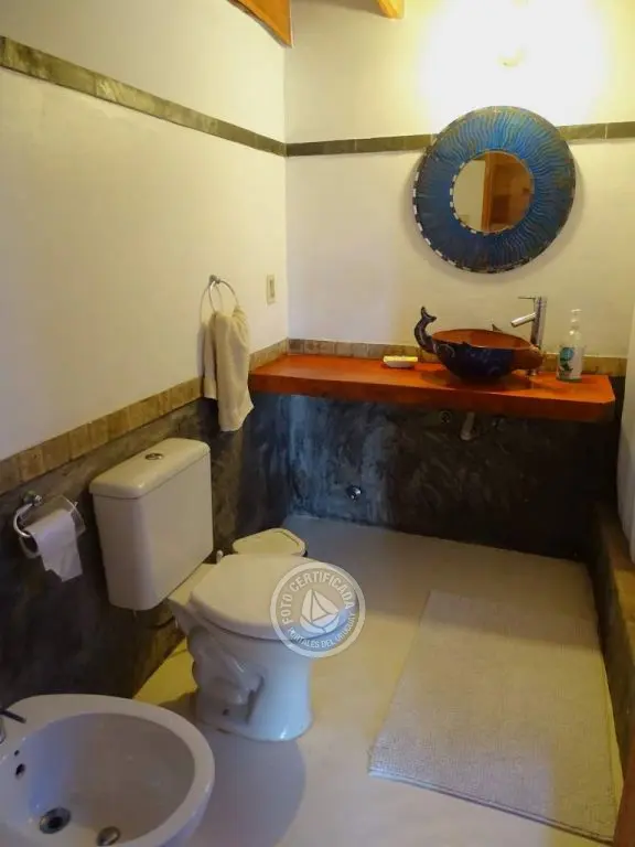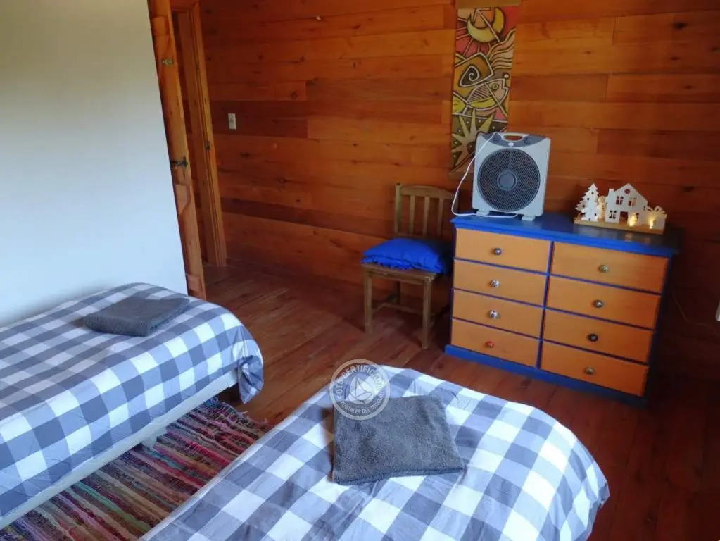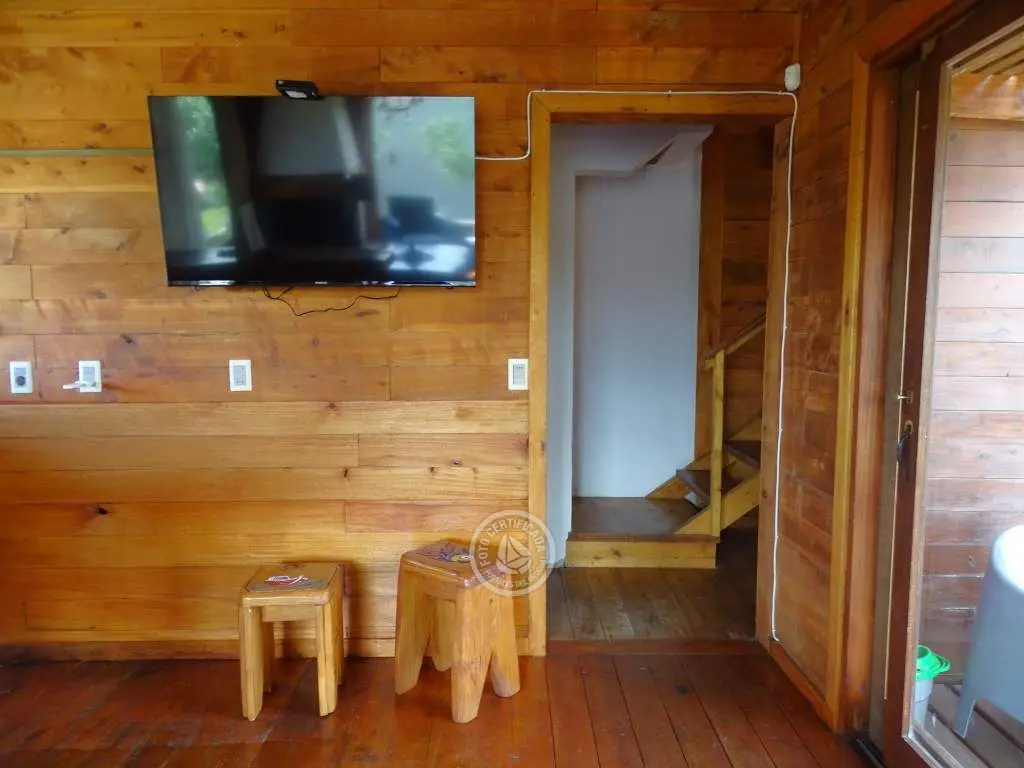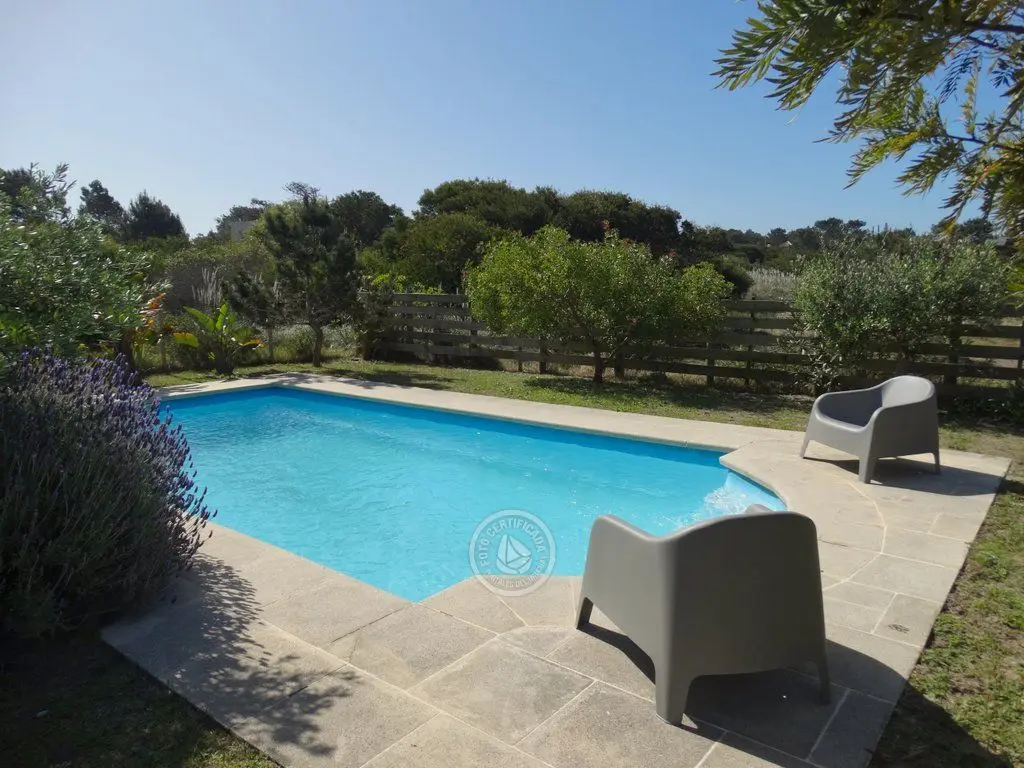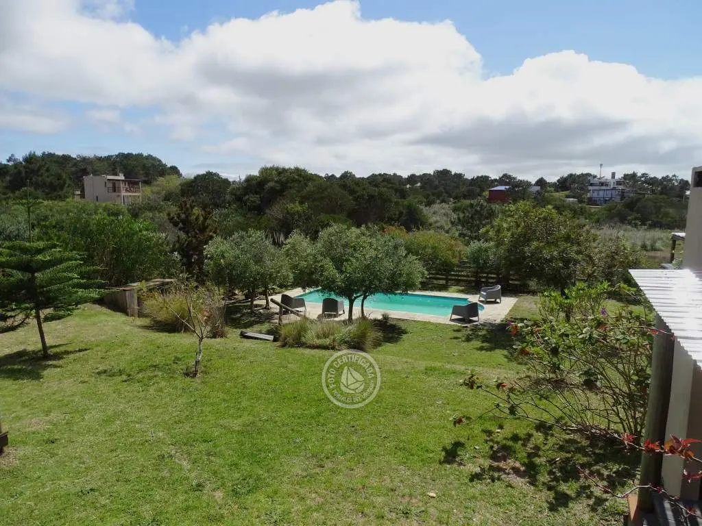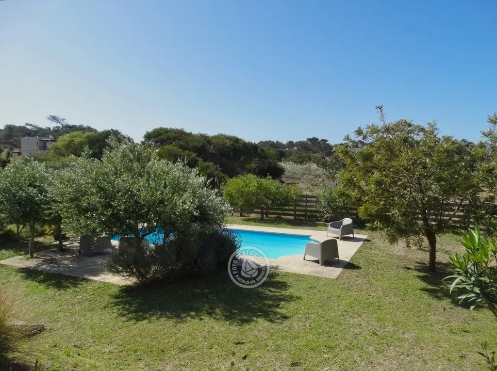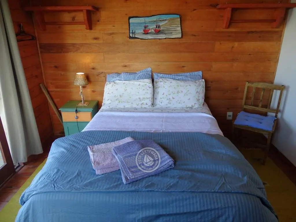 Hermosa cabaña,ubicada a una cuadra de Playa la Viuda y lejos del ruido.Con vista al mar,rodeada de un entorno natural y de tranquilidad.Ideal para 4 parejas o familias(la capacidad es de 8 huespedes, entre adultos y niños).Cuenta con 4 habitaciones(todas equipadas con ventilador) y 3 baños completos.Living con estufa a leña.Cocina completa,lavarropas y un gran salón comedor con vista panorámica y Direc TV.Afuera cuenta con un espacio de barbacoa cubierto,hermoso jardín de 1000 mtr con piscina.Wifi,estacionamiento para 2 autos y alarma.La tarifa publicada hace referencia a temporada baja.