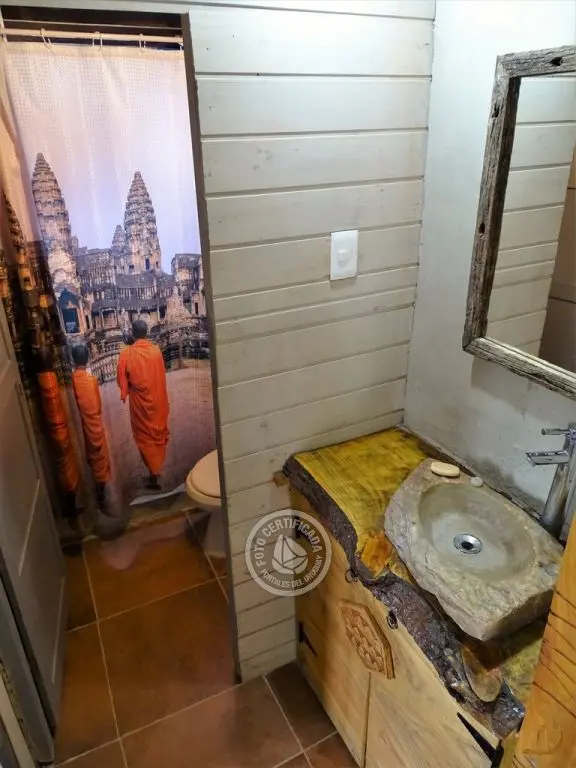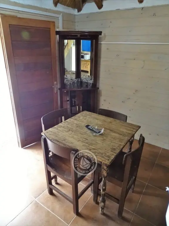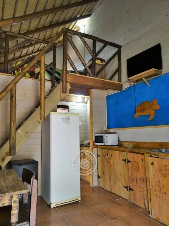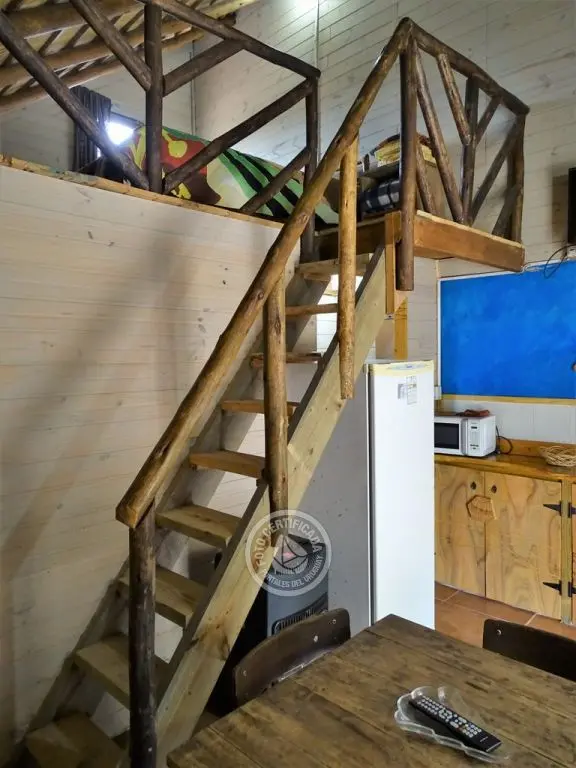 El alojamiento ofrece capacidad para 4 personas, con un cuarto privado con cama matrimonial, y un segundo piso con dos camas de 1 plaza y cuenta con todos los utensilios de cocina y ofrecemos ropa de cama, cuenta con parrillero privado y wifi también, piscina grande compartida con el complejo , parkin delante de la cabaña y cuenta también con espacio estar en el fondo
