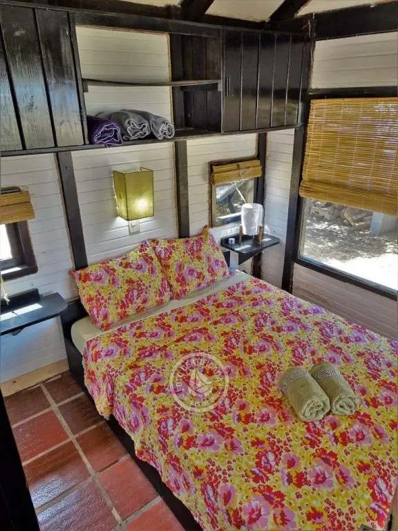 Cabaña para 2 a 4 personas con dormitorio matrimonial definido.